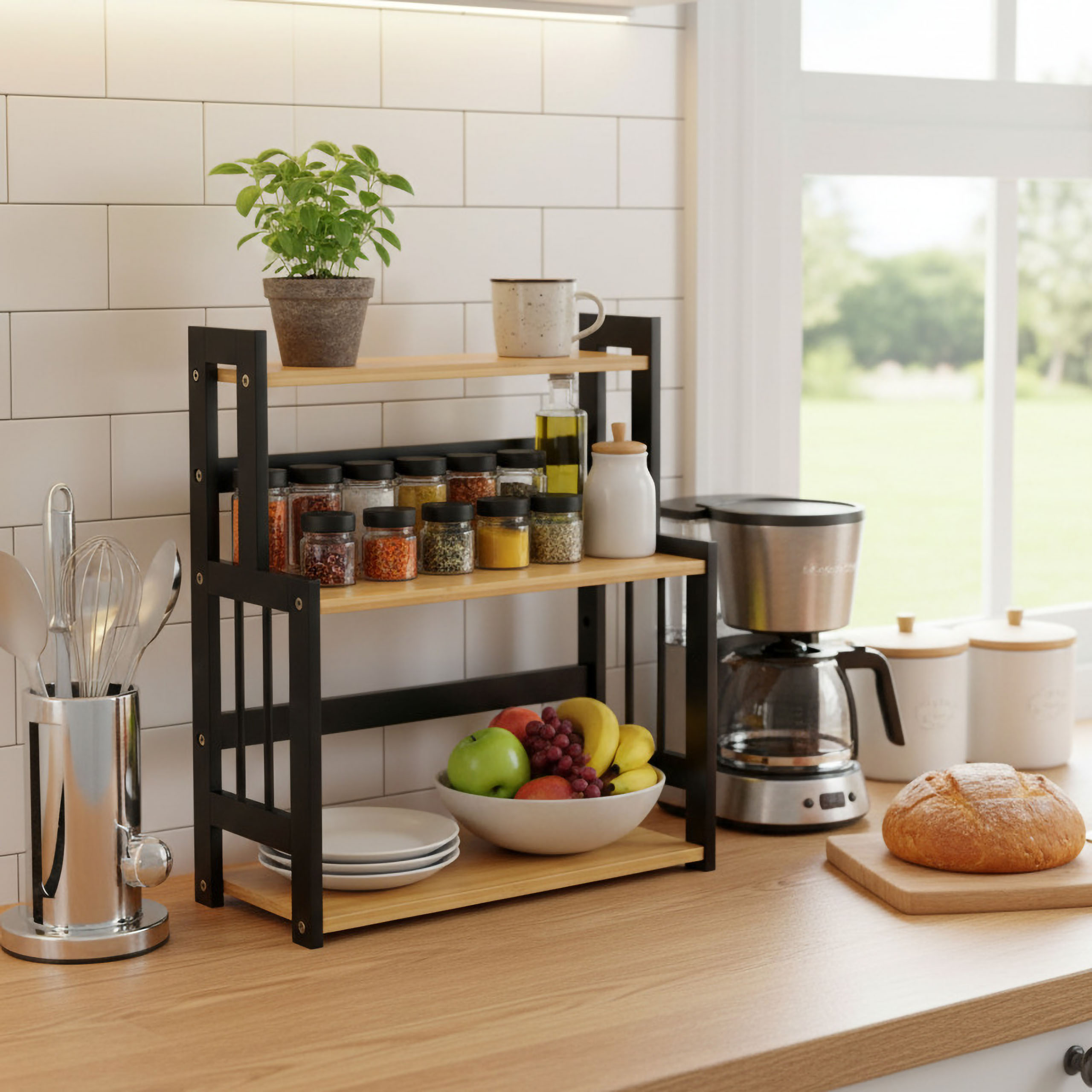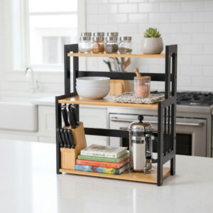 ✨Regał kuchenny Cezar Black – Bambusowy organizer na przyprawy i akcesoria✨