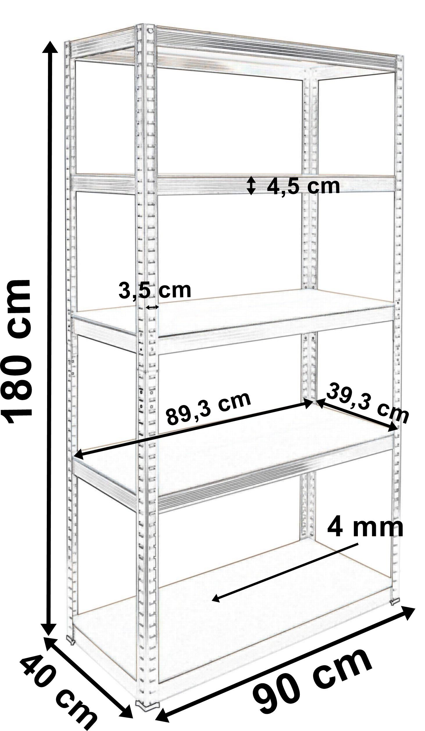Regał magazynowy 5 poziomów 875 kg 180 x 90 x 40 cm