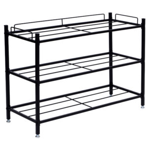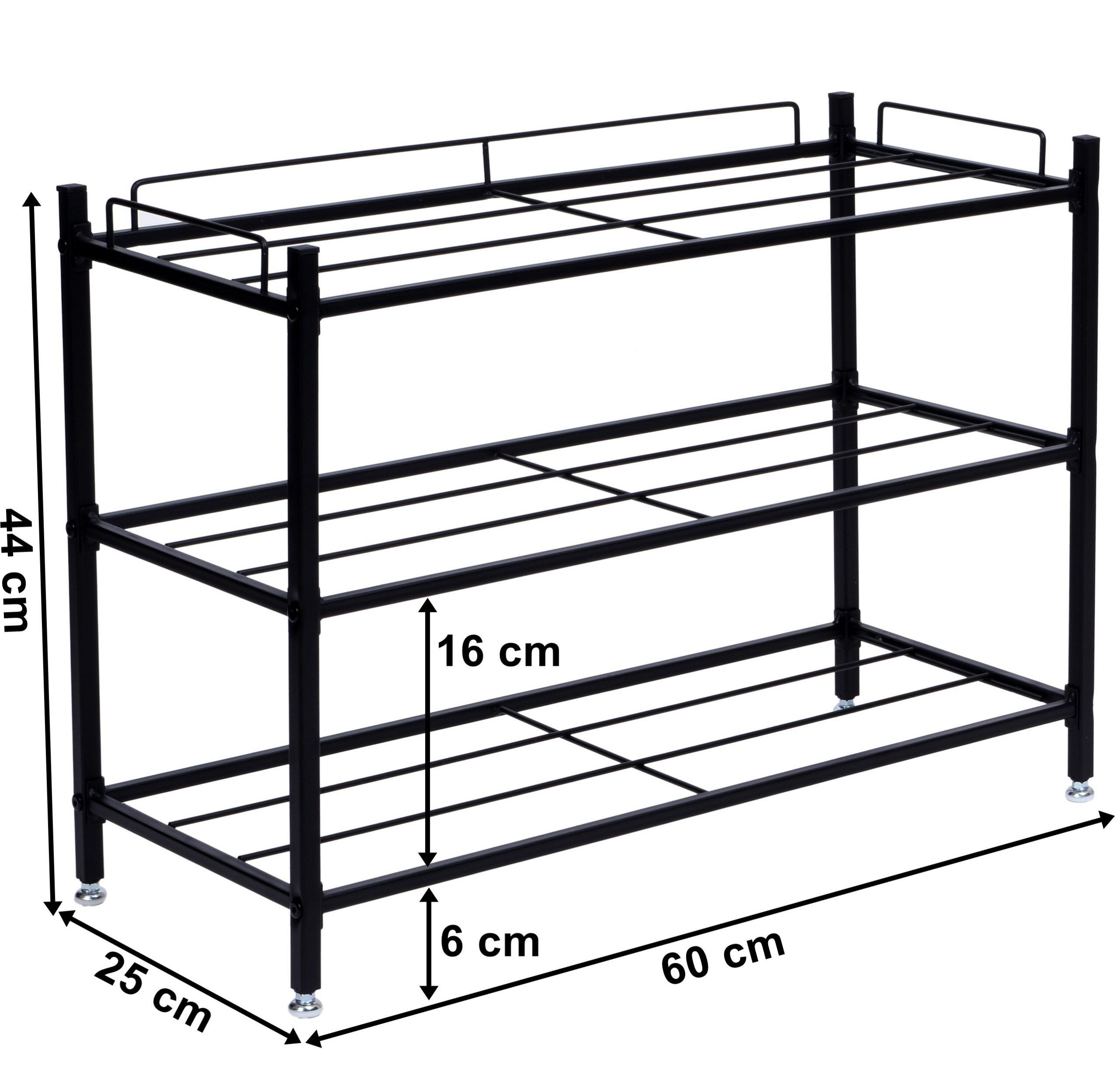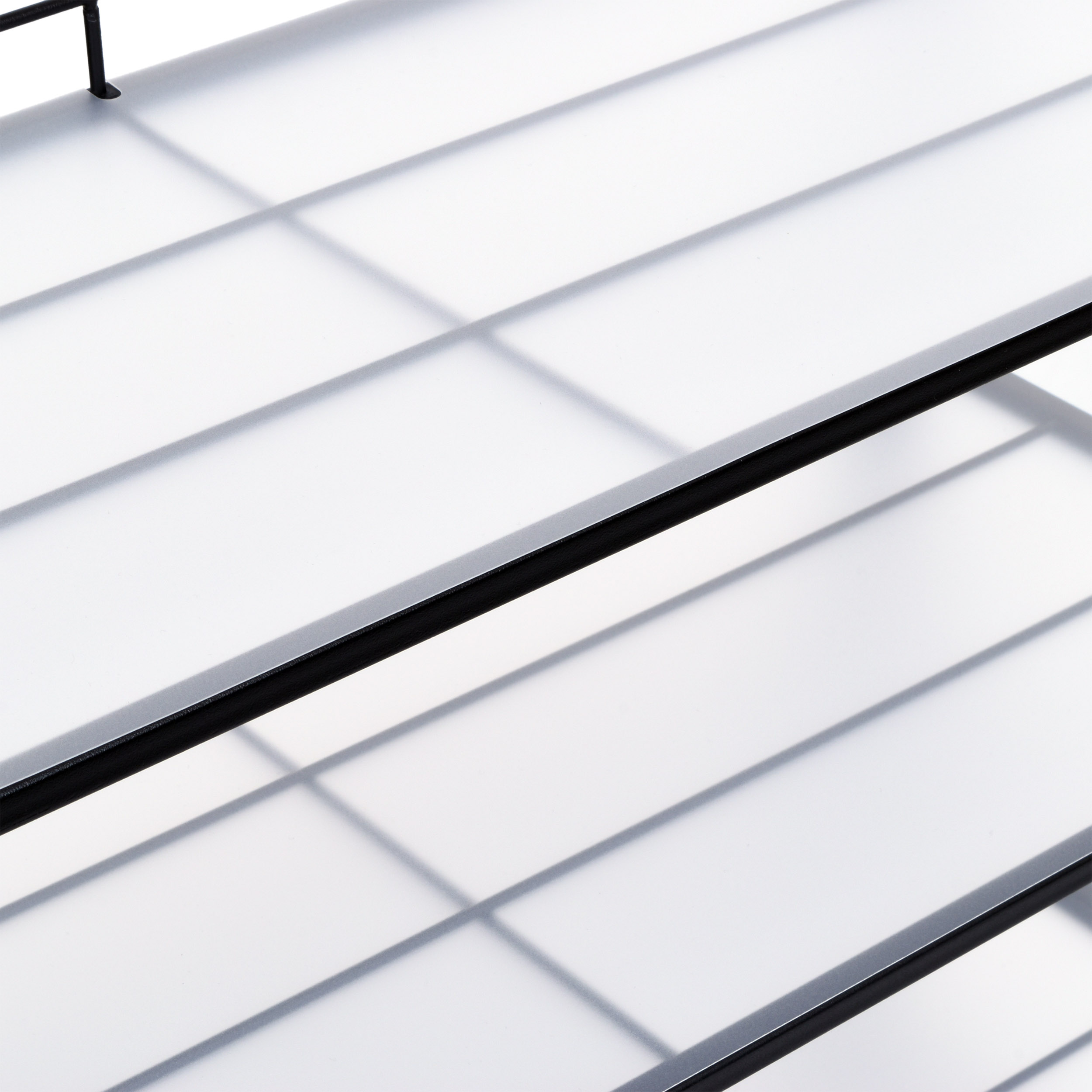 Trzypoziomowy regał na buty Viena to połączenie trwałości i stylu. Wykonany ze stali malowanej proszkowo, wyróżnia się solidnością i głębokim czarnym wykończeniem. Regulowane nóżki i nakładki ochronne zapewniają stabilność na każdej powierzchni. Mieści do 9 par butów, jest lekki, łatwy w przenoszeniu i doskonale pasuje do wnętrz loftowych oraz nowoczesnych przedpokojów.
