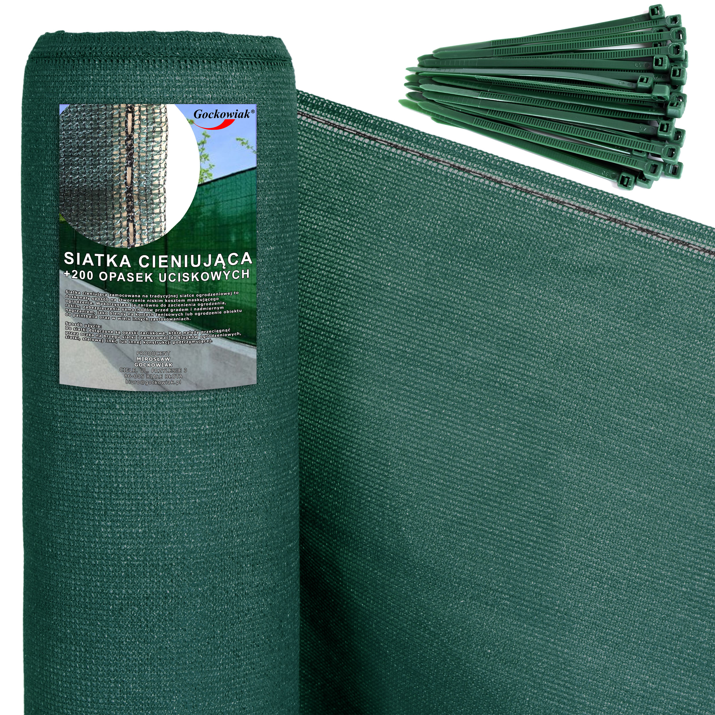 Siatka cieniująca to doskonały sposób na stworzenie niskim kosztem maskującego ogrodzenia. Jej głównym zadaniem jest ograniczenie widoczności i dostępu światła przy jednoczesnym zachowaniu prawidłowej wentylacji. Siatka gęsto pleciona, wykonana z najwyższej jakości materiałów HDPE i PP. Posiada filtr UV, który wzmacnia i wydłuża jej żywotność. Redukuje aż 90% światła słonecznego. Wersja ze wzmocnieniami w postaci przeszyć polipropylenowych blisko oczek montażowych. W zestawie 200 sztuk opasek zaciskowych. Siatka złożona jest do kompaktowych wymiarów na czas transportu.