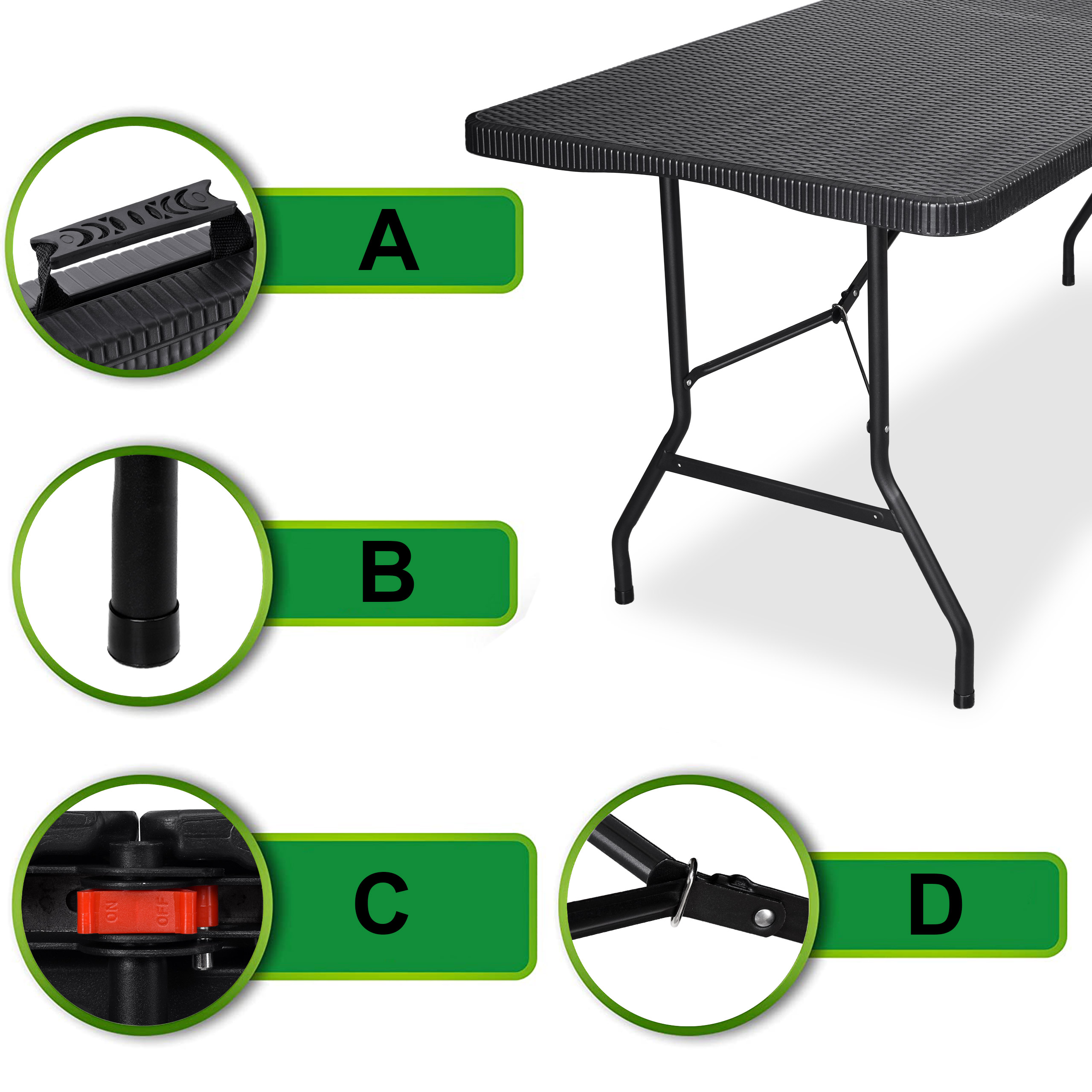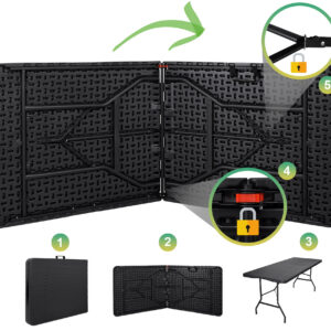 Stół cateringowy RATTAN składany w walizkę 180 cm czarny