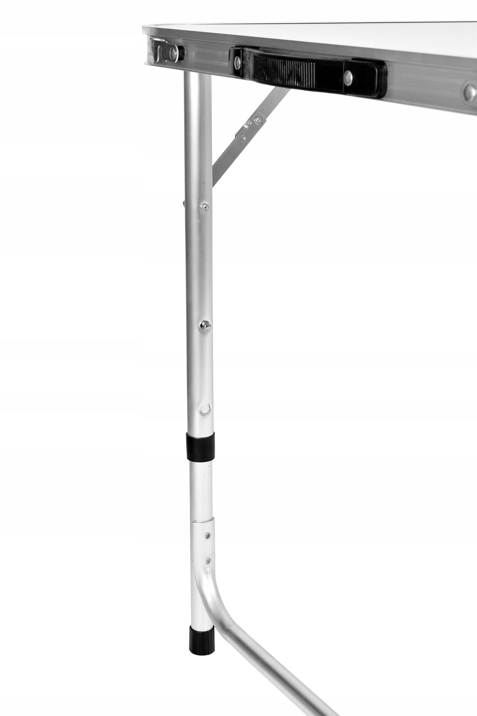 Kup teraz kempingowy stół turystyczny o nowowczesnym designie, z trzypoziomową regulacją wysokości. Stół składa się z aluminiowego stelaża oraz blatu z płyty MDF wysokiej jakości. Zastosowane materiały gwarantują niską wagę 4kg i dodatkowo łatwy transport. Stolik bardzo łatwo się rozkłada i składa do postaci walizki.