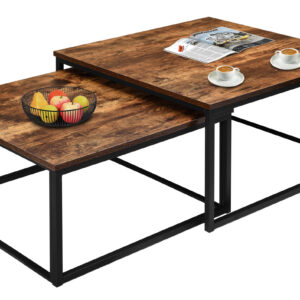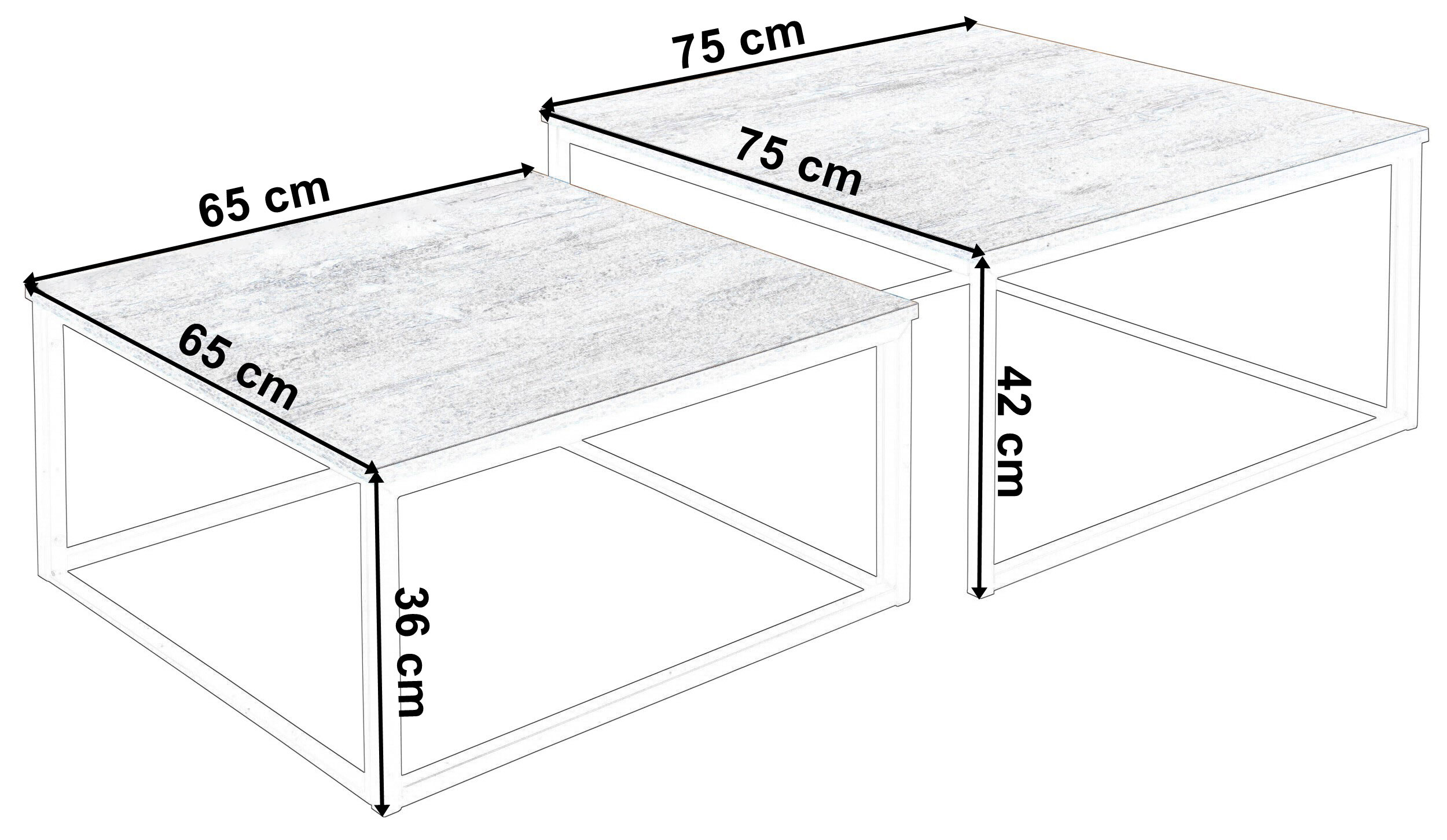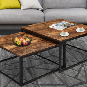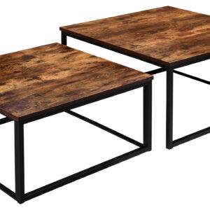 Nadaj swojemu domowi wyjątkowy industrialny akcent dzięki temu designerskiemu zestawowi 2 sztuk stolika. Kwadratowa metalowa rama łączy się z blatem z płyty laminowanej w kolorze postarzanego dębu, co stanowi element dekoracyjny w salonie, korytarzu, biurze i nie tylko. Umieść doniczki, kubki, dekoracje lub czasopisma na stolikach, aby zawsze mieć je pod ręką. Zestaw stolików Velen to idealny mały mebel, aby stworzyć dodatkową powierzchnię do przechowywania w kompaktowej przestrzeni. Mniejszy stół można łatwo wsunąć pod większy stolik. Stoły można używać pojedynczo lub razem. To zdecydowanie praktyczne i przyciągające wzrok uzupełnienie Twojego wnętrza.