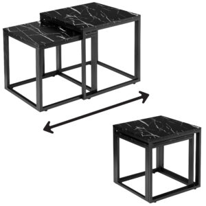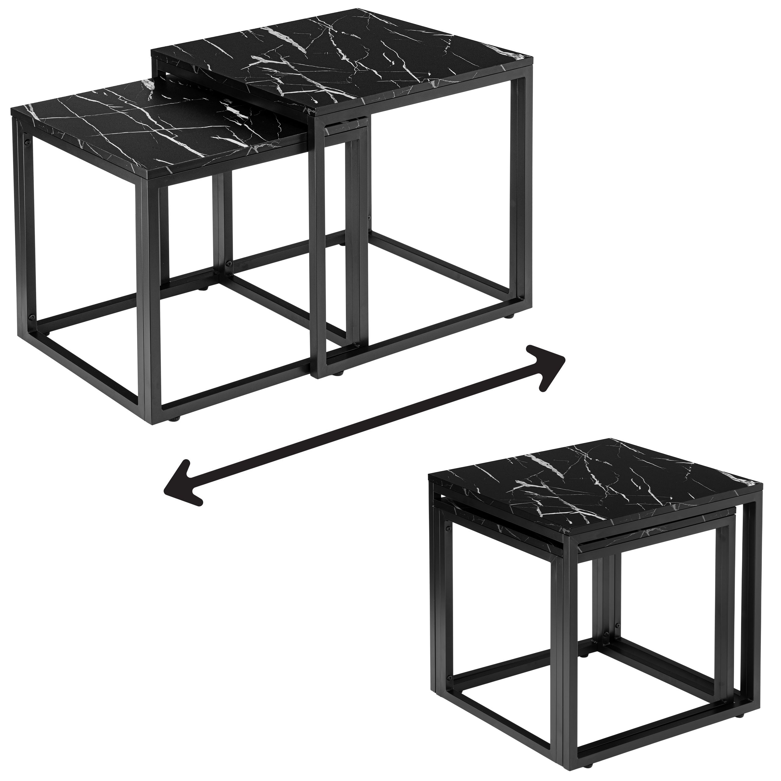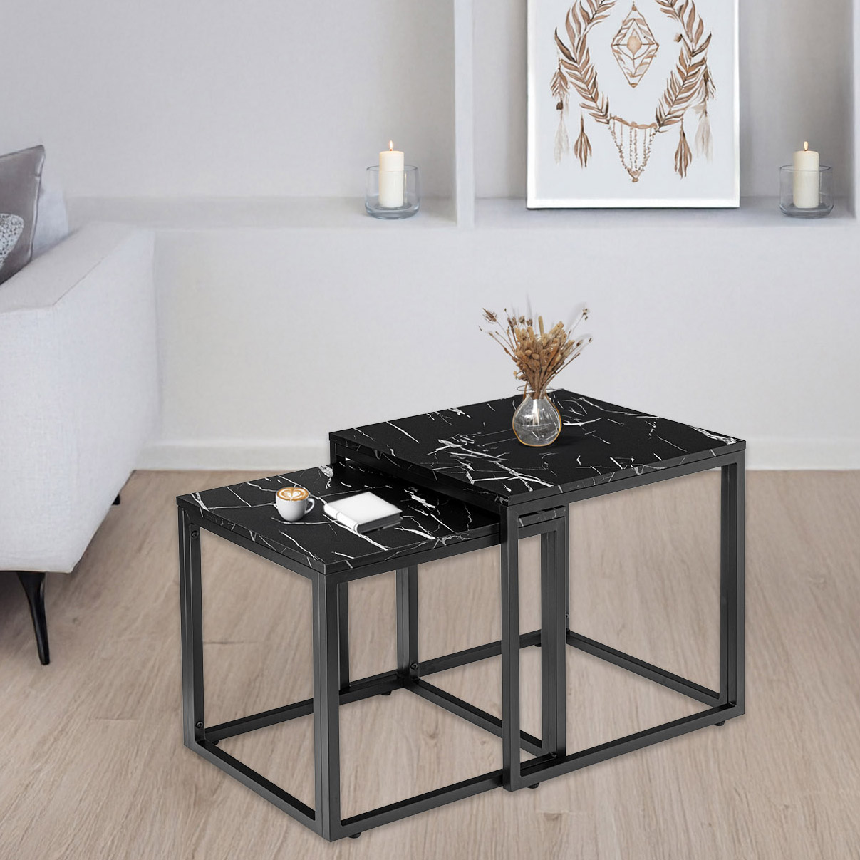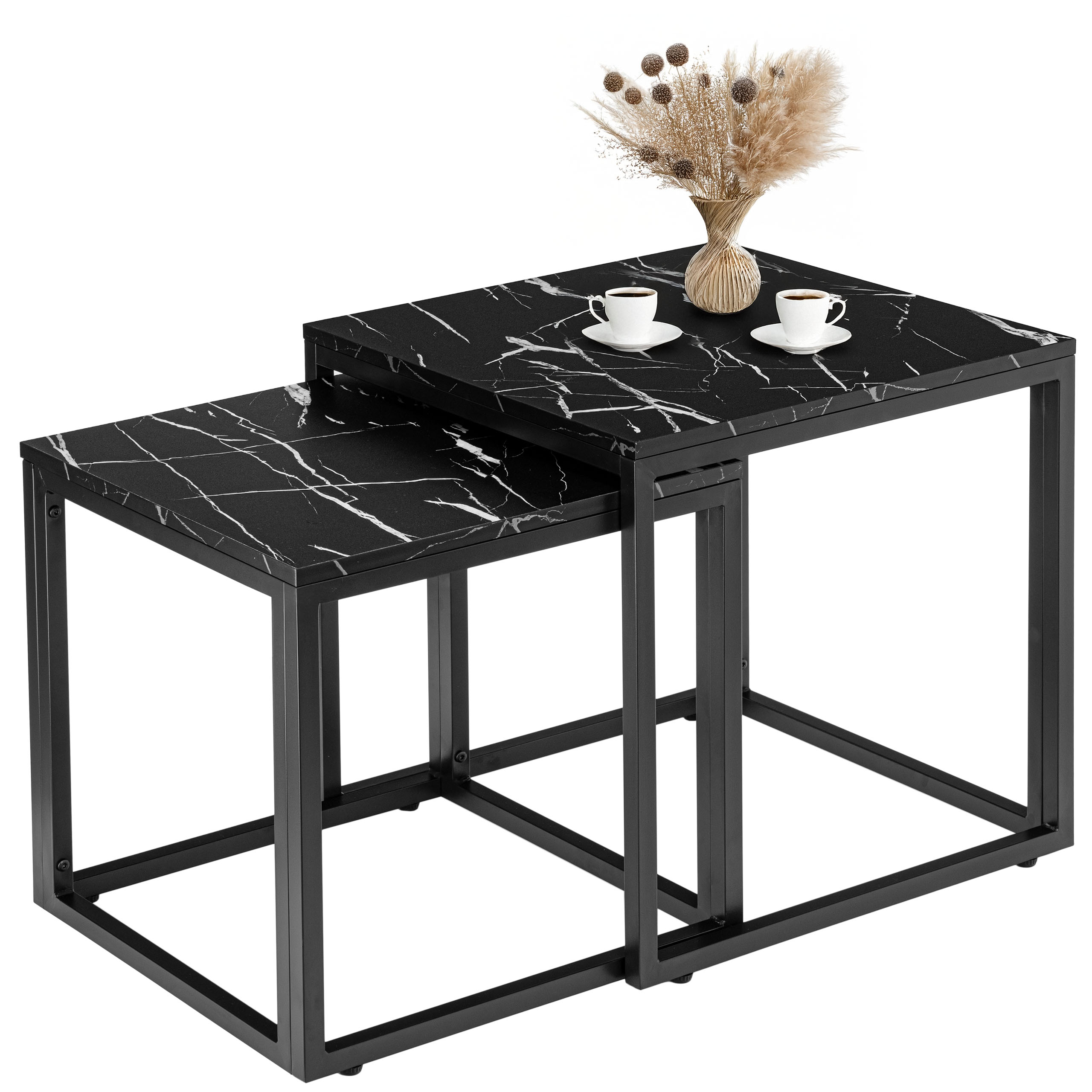 Zestaw stolików Praven to połączenie elegancji i funkcjonalności, które odmieni Twoje wnętrze. Idealnie sprawdzą się w salonie, biurze czy pokoju gościnnym, oferując praktyczne rozwiązanie w stylowym wydaniu. Możesz ustawić je razem, tworząc dynamiczną aranżację, lub osobno – w zależności od potrzeb. Regulowane nóżki zapewniają stabilność nawet na nierównych powierzchniach, a solidna metalowa konstrukcja gwarantuje trwałość na lata. Zastosowanie laminowanego blatu o wyglądzie marmuru sprawia, że stoliki są eleganckie i łatwe w utrzymaniu czystości. Dodatkowym atutem jest możliwość wsunięcia mniejszego stolika pod większy, co pozwala zaoszczędzić miejsce, gdy nie są w użyciu.