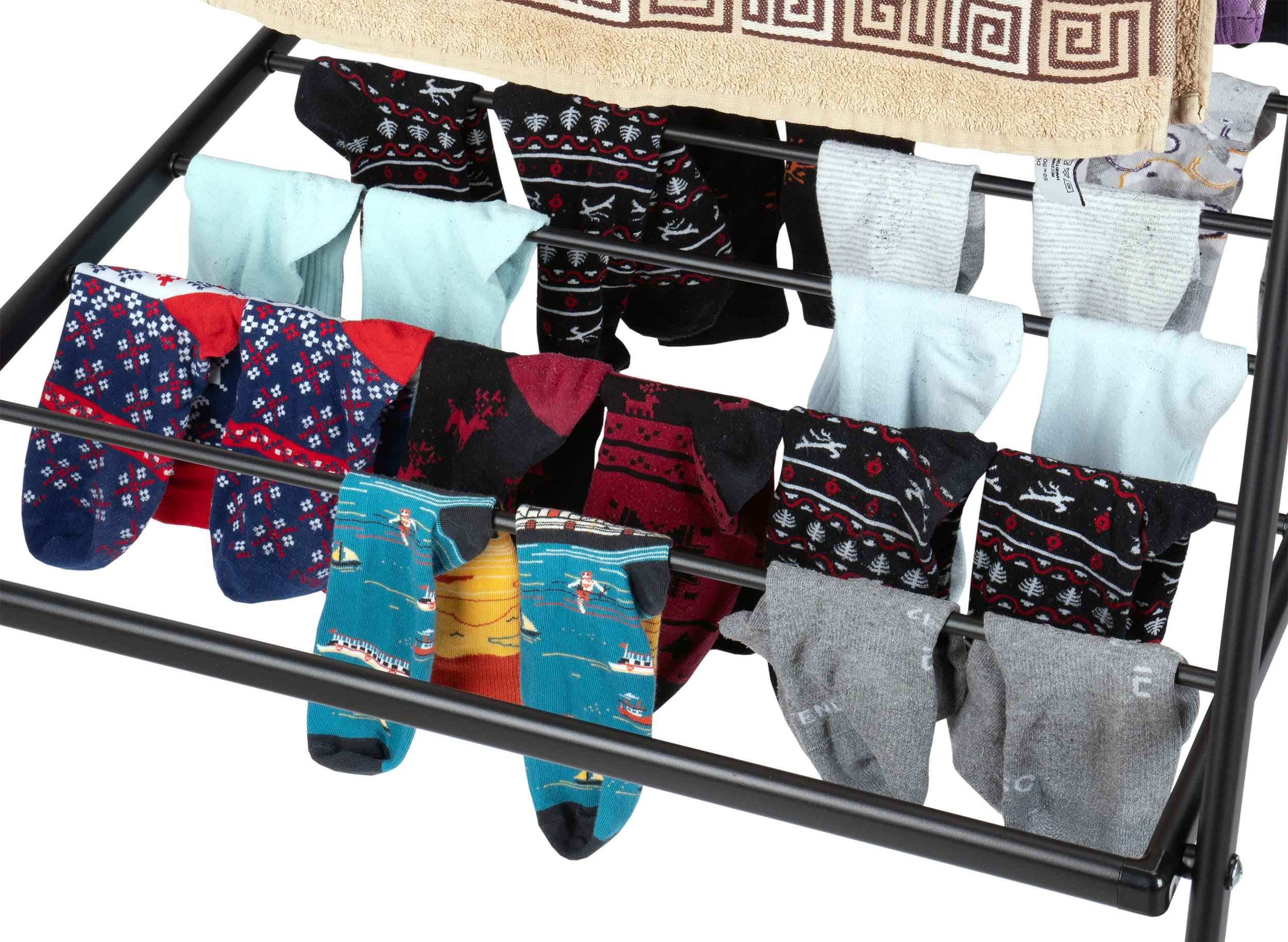 Stalowe rurki malowane proszkowo gwarantują trwałość, co czyni suszarkę idealną do długotrwałego użytkowania.