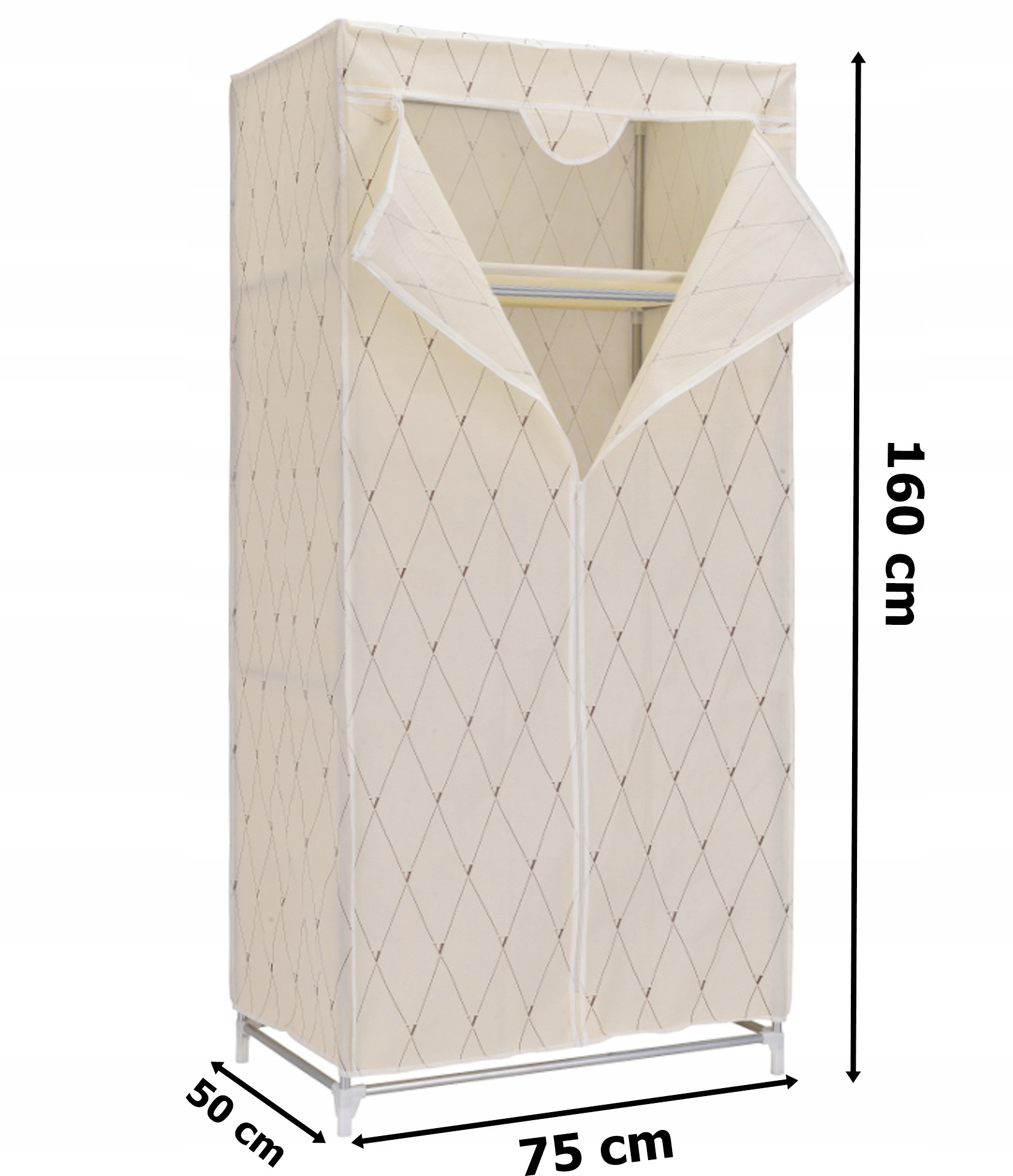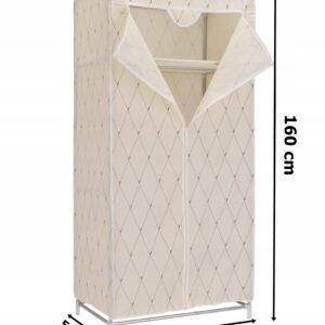 Szafa wykonana ze stalowych ramek tworzących jej szkielet. Na stelaż nałożony jest oddychający dobrej jakości materiał wraz z nadrukowanym widokiem. Jest łatwa do utrzymania czystości i praktyczna, półka idealnie nadaje się do przetrzymywania czapek, szalików, rękawiczek lub innych drobnych rzeczy. W głównej części szafy jest także możliwość zawieszenia ubrań na wieszakach. Lekka i solidna konstrukcja w dowolnej chwili możesz ją złożyć, przewieść, przestawić.