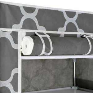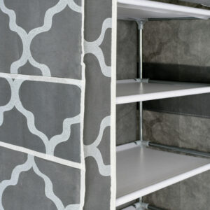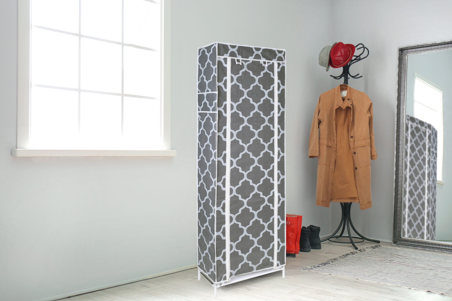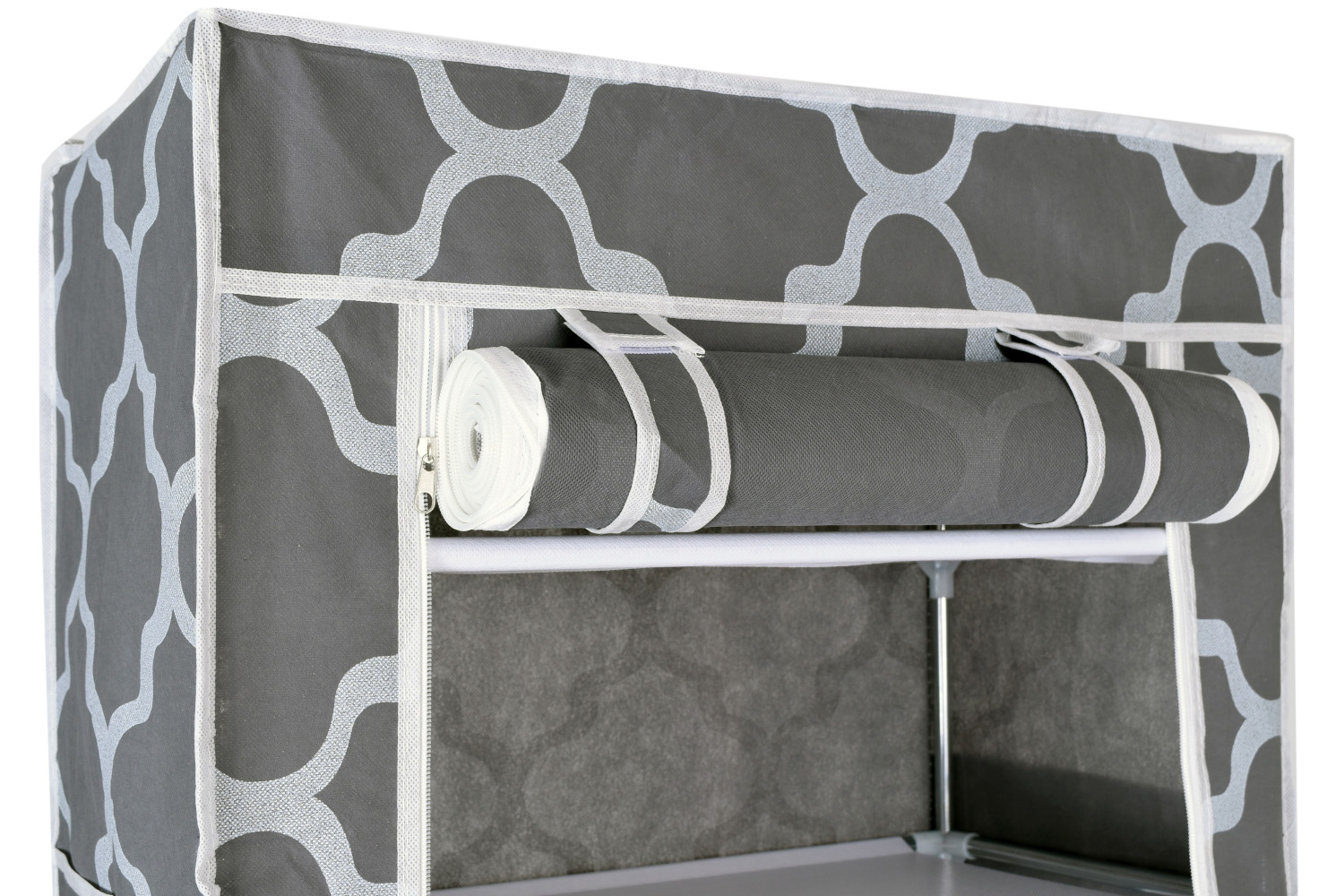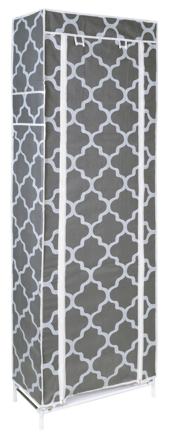 Bardzo lekka ale stabilna szafa tekstylna, dzięki której uporządkujesz i zabezpieczysz swoją odzież. Metalowy stelaż z łącznikami z tworzywa sztucznego czyni ją łatwą w montażu. Wygodnie zabezpieczysz garderobę zamkami błyskawicznymi.
