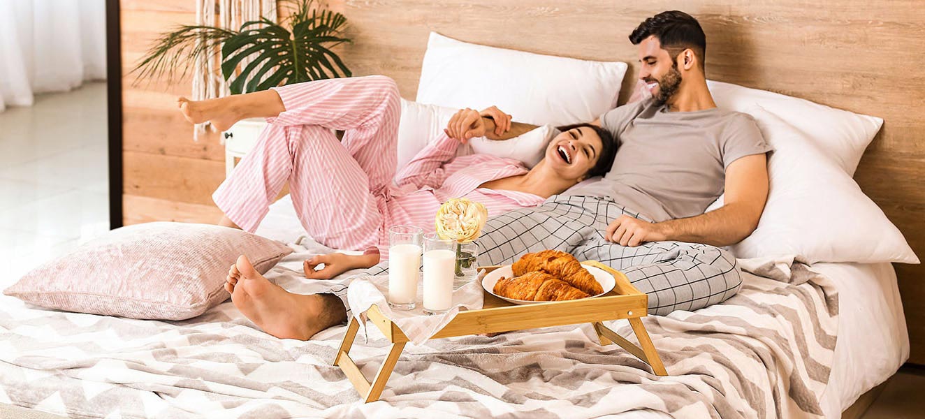 Przeznaczenie: wygodne podawanie posiłków, stolik pod laptopa | Kolor: naturalny bambus