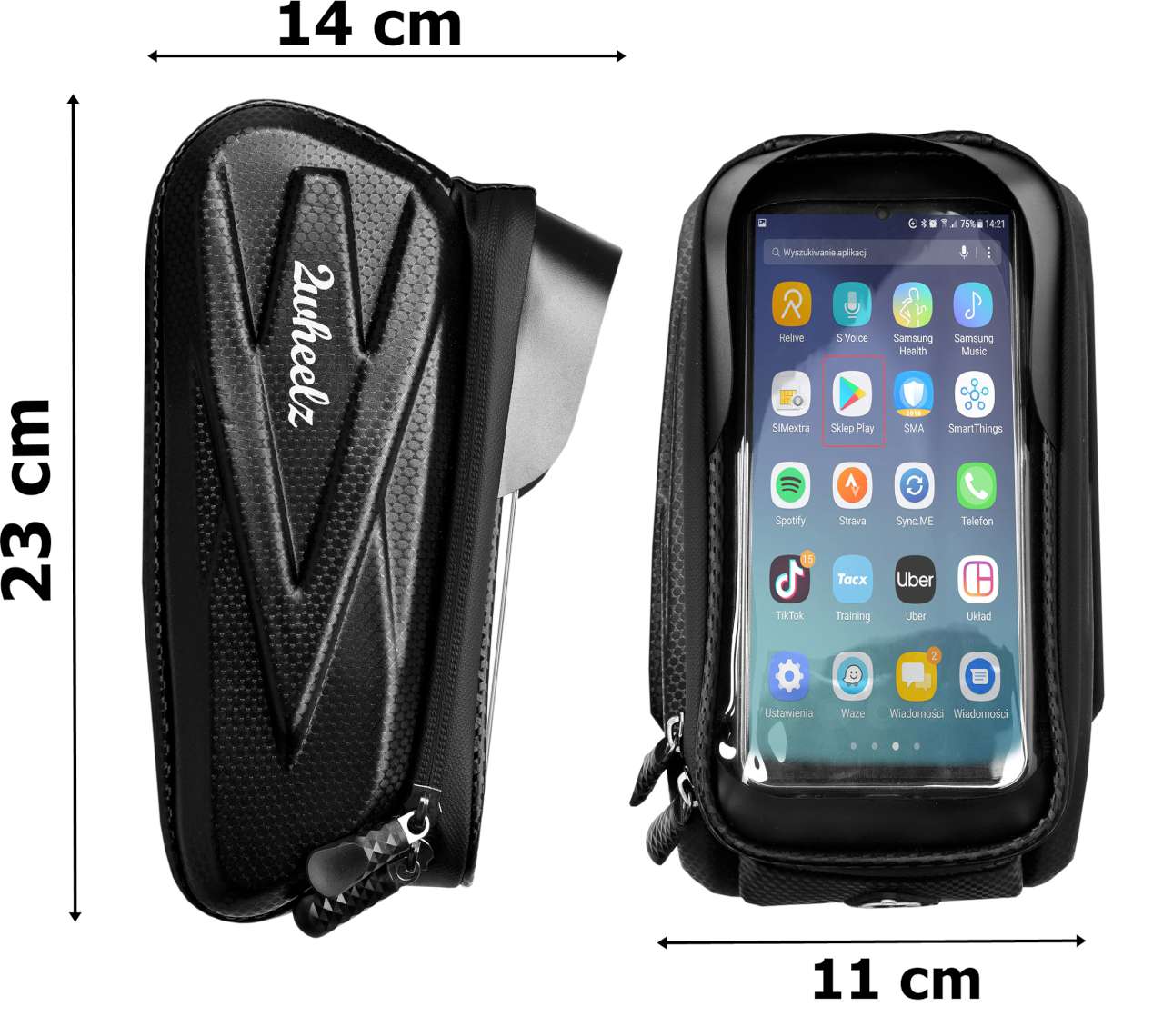 Torba rowerowa marki 2Wheelz to idealny sprzęt rowerowy. Posiada specjalny pokrowiec na telefon z funkcją obsługi ekranu dotykowego. Sakwa pasuje do wszystkich modeli smartfonów do 7 cali. Wykonana z materiałów najwyższej jakości z zachowaniem dbałości o każdy detal. Jest wodoodporna, ma laminowany zamek główny i solidne rzepy. Pojemna główna komora z przegrodami bezproblemowo pomieści najpotrzebniejsze rzeczy jak: dokumenty, klucze, okulary itp. Sakwa ma również wyjście słuchawkowe, dzięki któremu komfortowo możemy słuchać ulubionej muzyki.