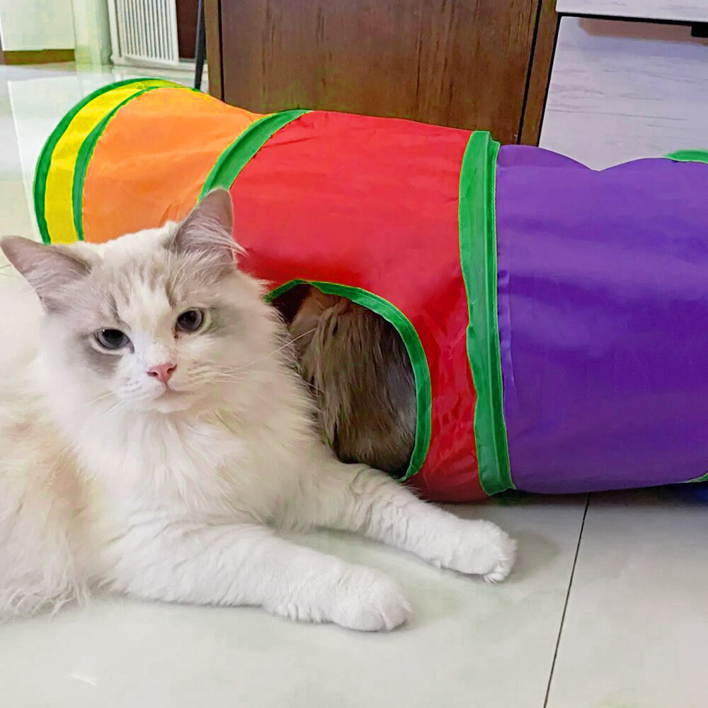 Tunel z dwoma oknami zapewnia doskonałą rozrywkę, a jednocześnie może pełnić funkcję bezpiecznej kryjówki, w której Twój kot będzie mógł odpocząć i czuć się bezpiecznie. Bez względu na to, czy jesteś w domu czy w ogrodzie, ten tunel sprawdzi się doskonale.