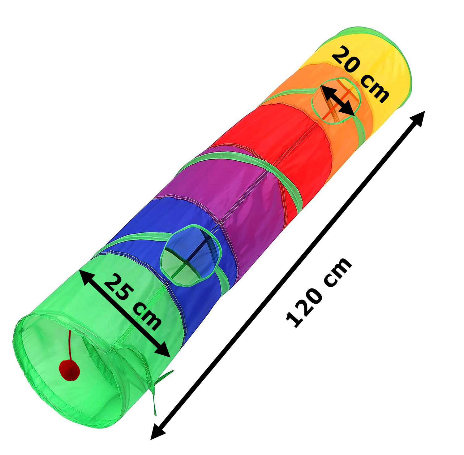 Dodatkową zaletą jest jego rozmiar – 120 cm nie zabiera dużo miejsca w domu a jednocześnie zapewnia schronienie i rozrywkę nawet kilku kotom jednocześnie. Tunel można łatwo złożyć na płasko i wygodnie transportować w każdej chwili. Zajmuje bardzo niewiele miejsca dzięki średnicy 25 cm, dlatego możesz go łatwo zabrać ze sobą, gdziekolwiek się udasz.