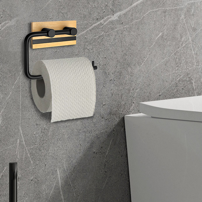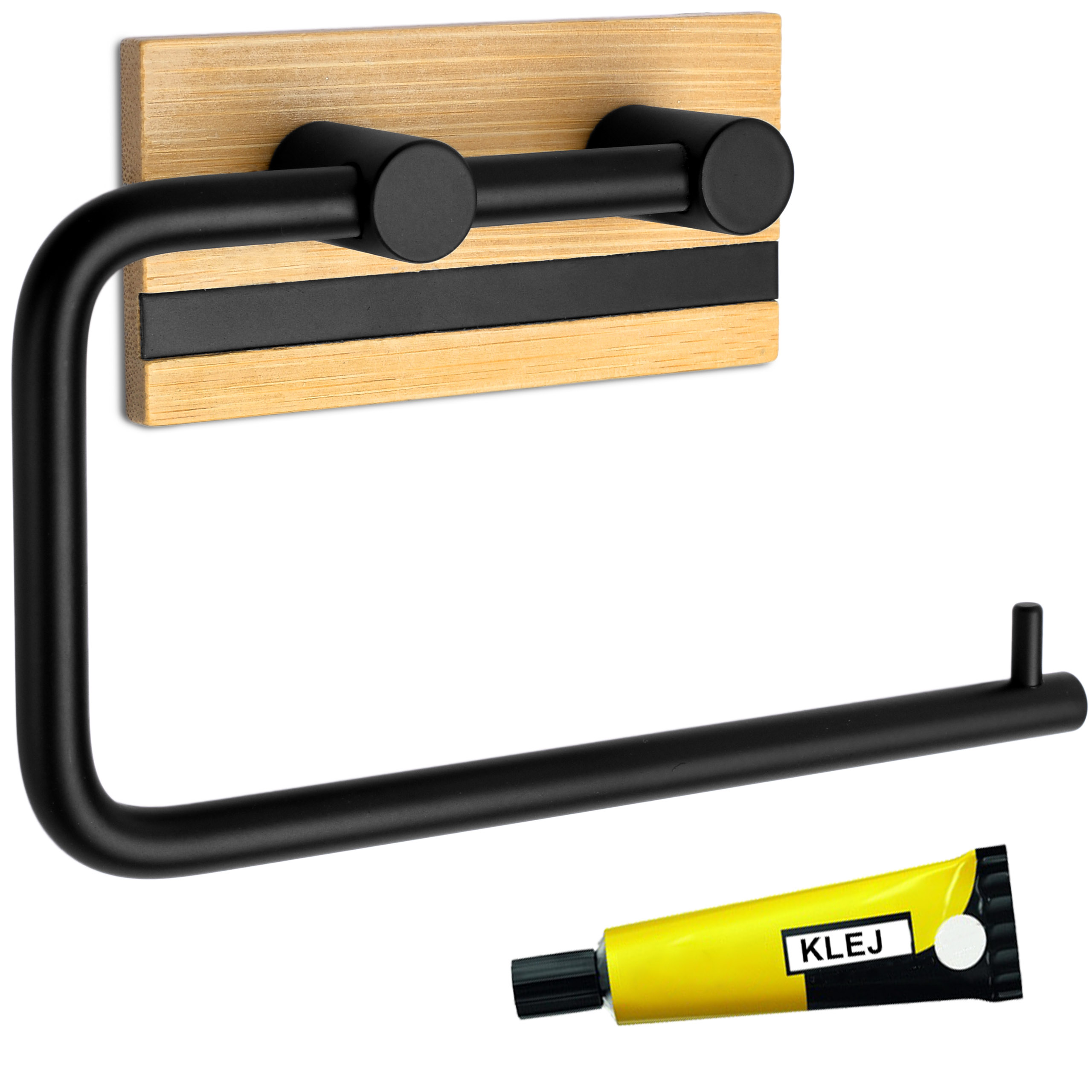 Uchwyt na papier toaletowy Demak został wykonany ze stali nierdzewnej malowanej proszkowo i z naturalnego drewna bambusowego. Uchwyt o nowoczesnym wyglądzie i wykończony na kolor głębokiej, matowej czerni. Czarny kolor sprawia, że doskonale sprawdzi się w każdej łazience. Idealnie pasuje do stylu loftowego. Uchwyt cechuje ciekawe połączenie materiałów oraz estetyczne wykonanie. Model ma gładkie i zaokrąglone krawędzie i perfekcyjnie wkomponuje się w nowocześnie urządzone wnętrza.