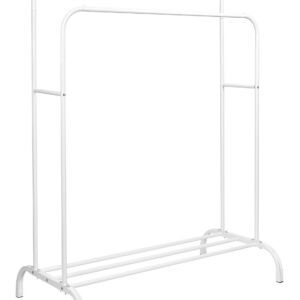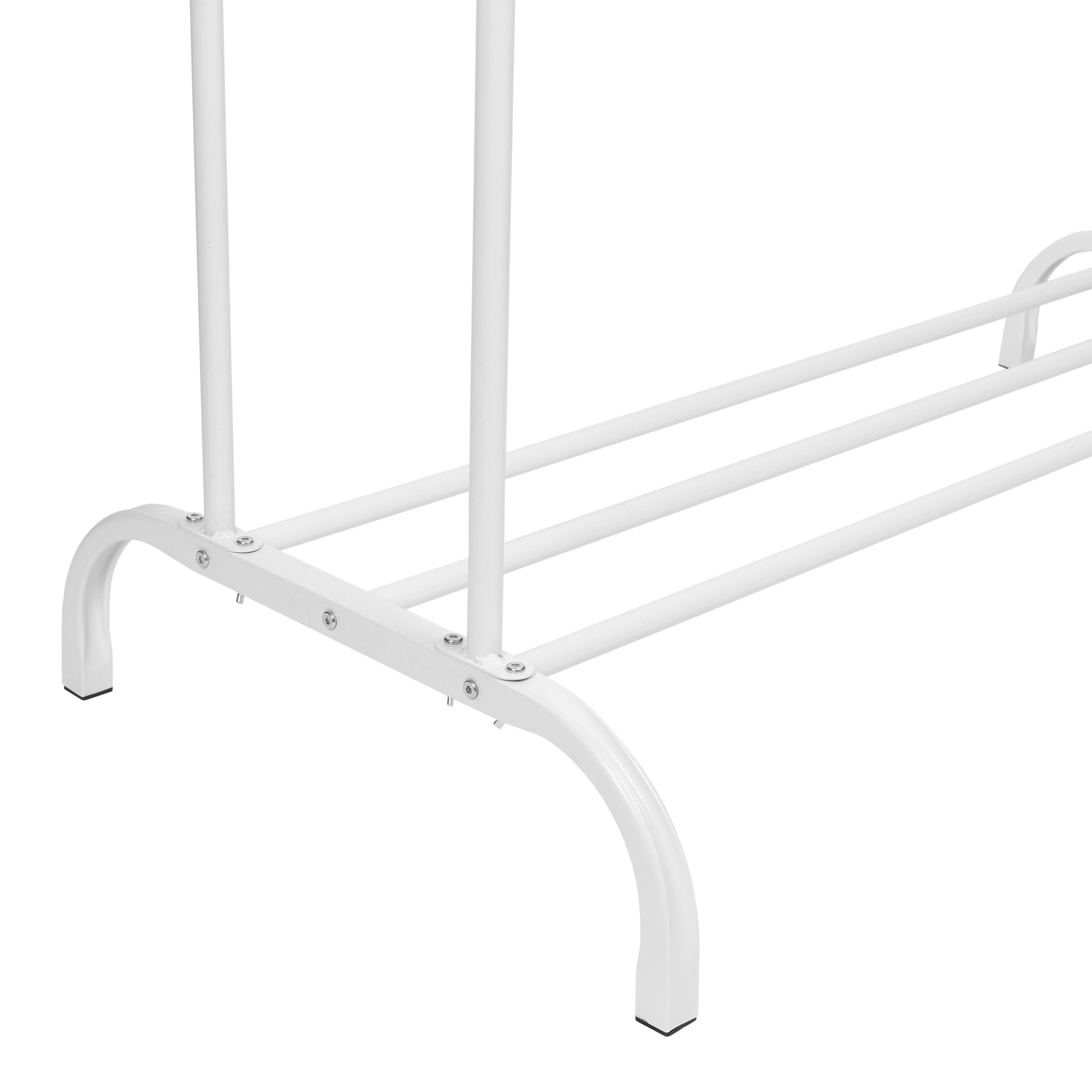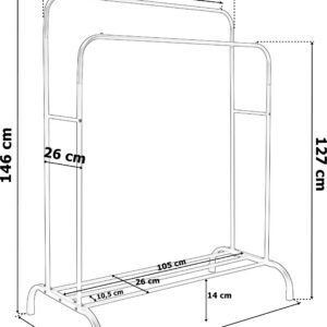 Wieszak Beni to funkcjonalny i stylowy sposób na zorganizowanie odzieży, butów i dodatków w jednym miejscu. Dzięki podwójnej konstrukcji i dodatkowej półce zyskujesz więcej przestrzeni do przechowywania, bez konieczności montażu w ścianie. Solidna, stalowa rama zapewnia stabilność i bezpieczeństwo użytkowania nawet przy dużym obciążeniu. Biel w połysku doskonale pasuje do nowoczesnych wnętrz i stylu skandynawskiego, a przemyślane detale sprawiają, że codzienne korzystanie z wieszaka jest po prostu wygodne.
