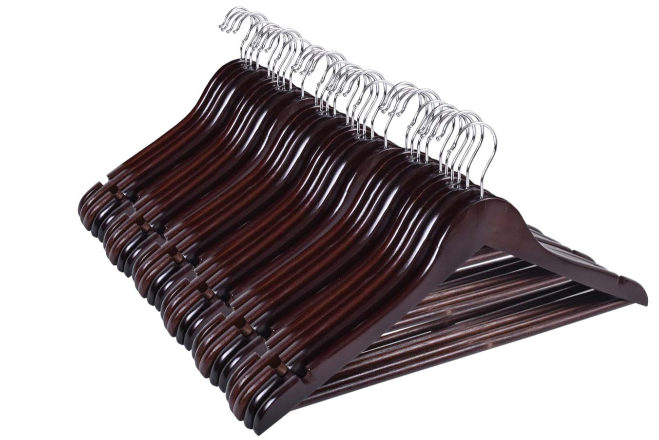 Wieszak Rondo wykonano z wysokiej jakości drewna. Został starannie wykończony i zabezpieczony farbą, dzięki czemu będzie doskonale prezentował się także w eleganckich butikach z luksusową odzieżą. W domowym zaciszu zadba o to, by Twoje ubrania nie zsuwały się, posiada bowiem specjalne wcięcia na ramionach. Dodatkowa poprzeczka pozwoli zawiesić dodatkowe elementy garderoby i zapobiegnie ich zagnieceniu. Hak wieszaka wykonano ze stali nierdzewnej, co znacząco wyróżnia go pod względem trwałości na tle konkurencji.