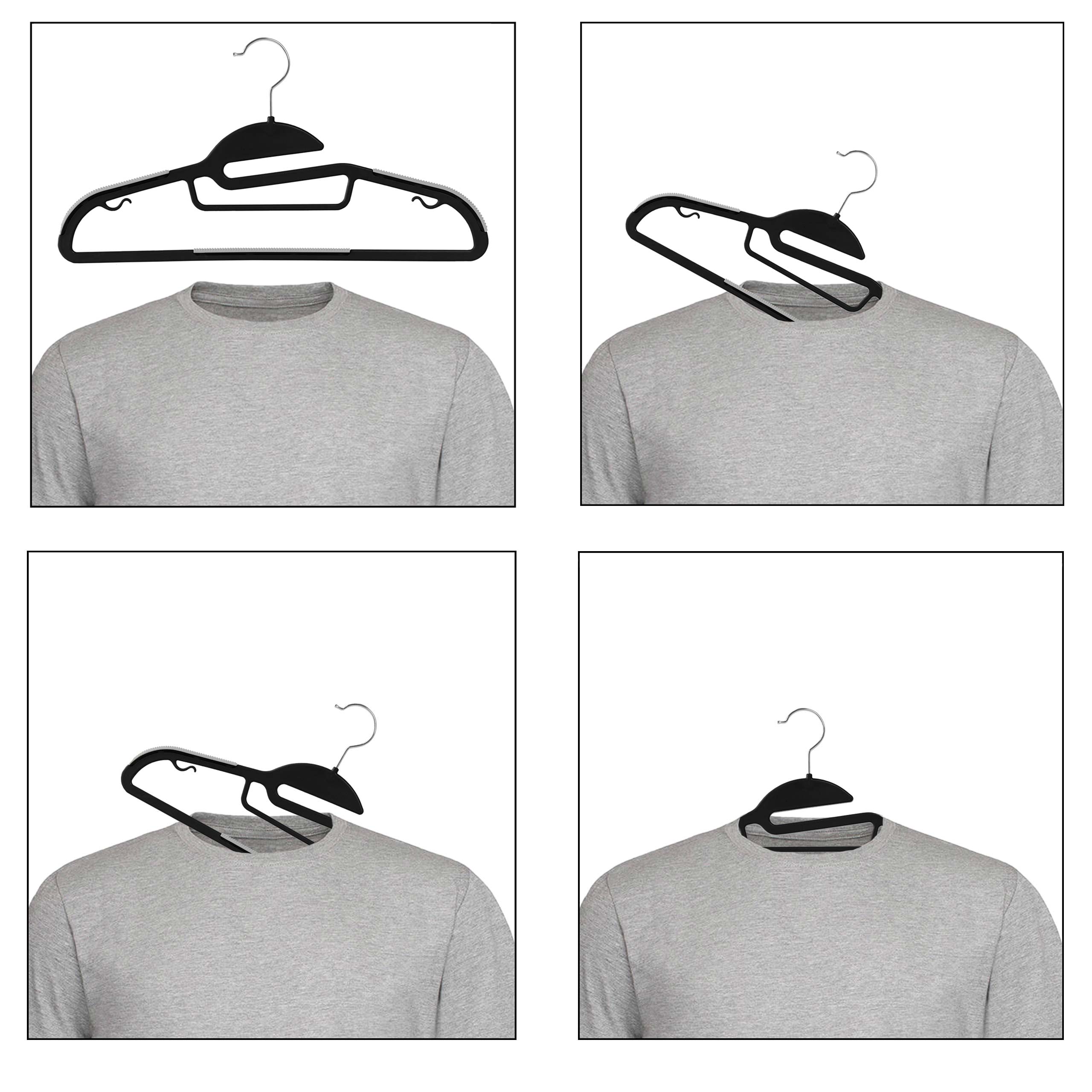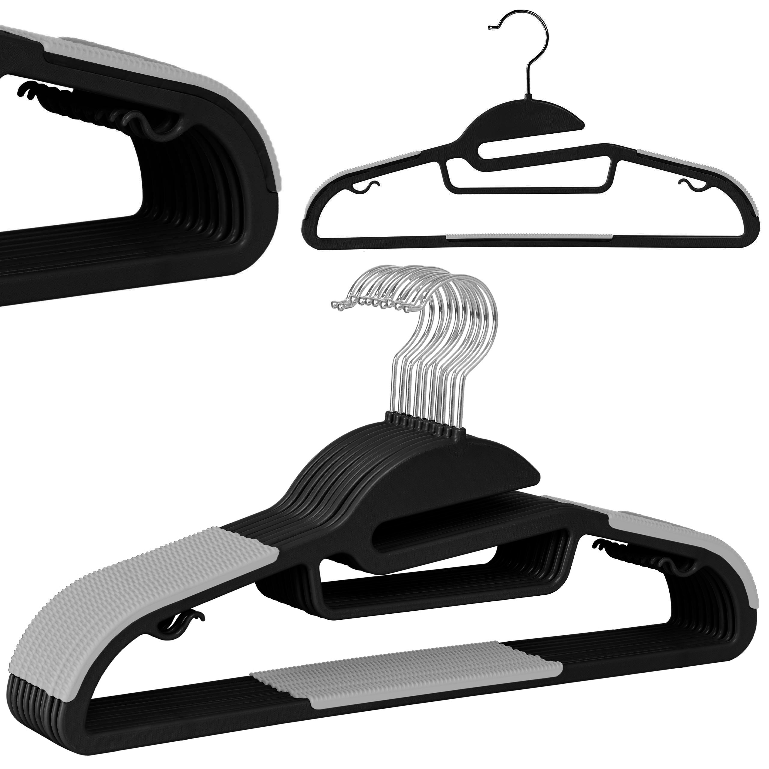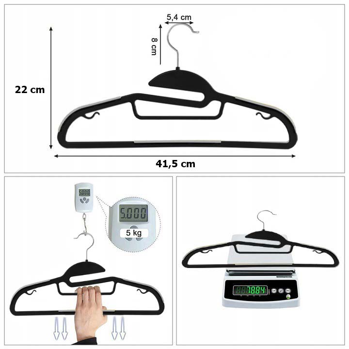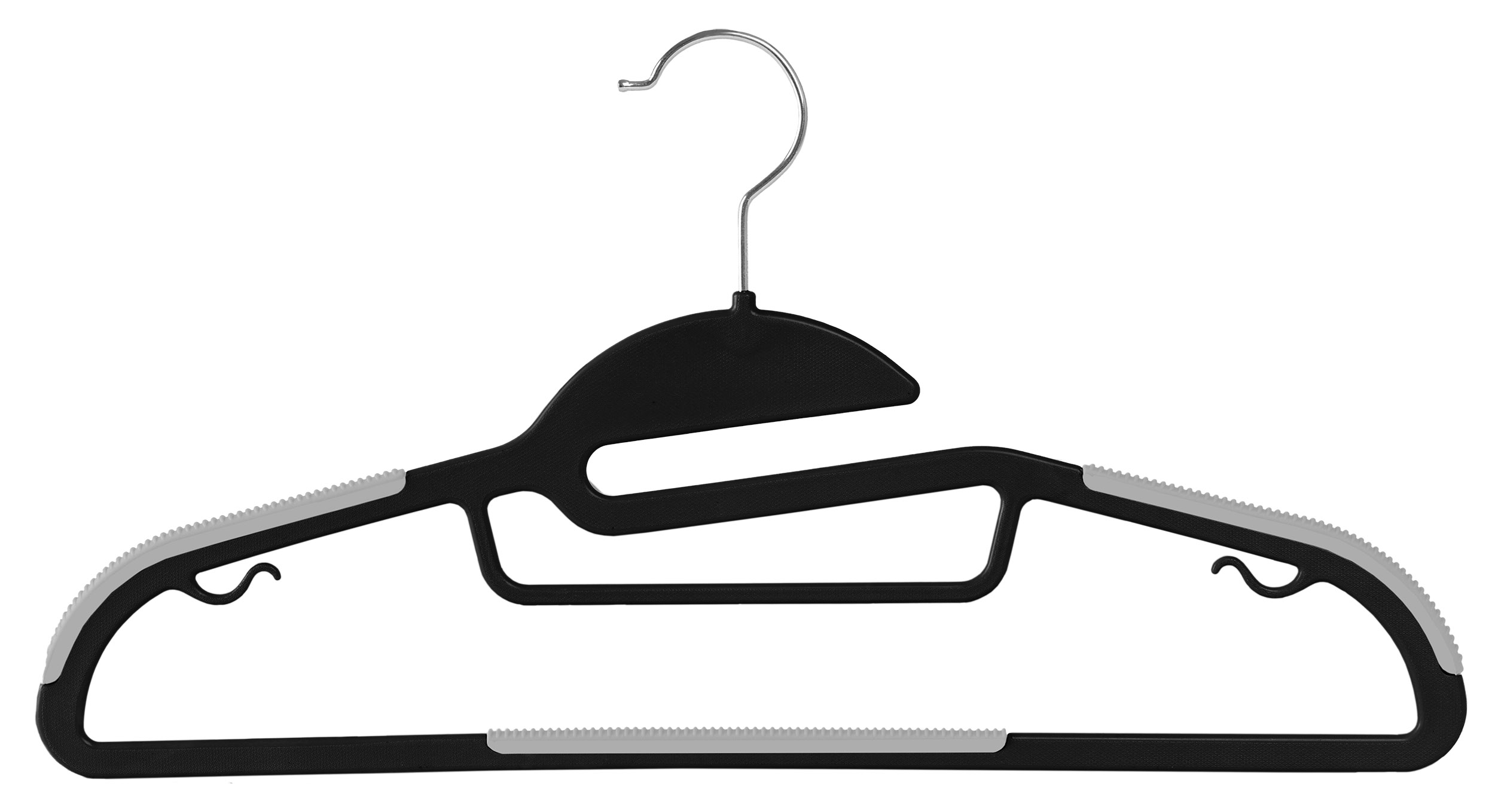 Oferujemy elastyczne i mocne wieszaki plastikowe idealne do szafy, garderoby czy też ekspozycji odzieży w butiku. Wieszaki wykonano z mocnego i wytrzymałego tworzywa sztucznego. Gumowe elementy zapobiegają zsuwaniu się ubrań, a odpowiednie wyprofilowanie sprawia, że tkaniny nie ulegają deformacji. Wieszaki posiadają metalowy, chromowany haczyk. Wieszak posiada wcięcia ułatwiające zakładanie odzieży. Dzięki temu odzież się nie rozciąga i nie deformuje.