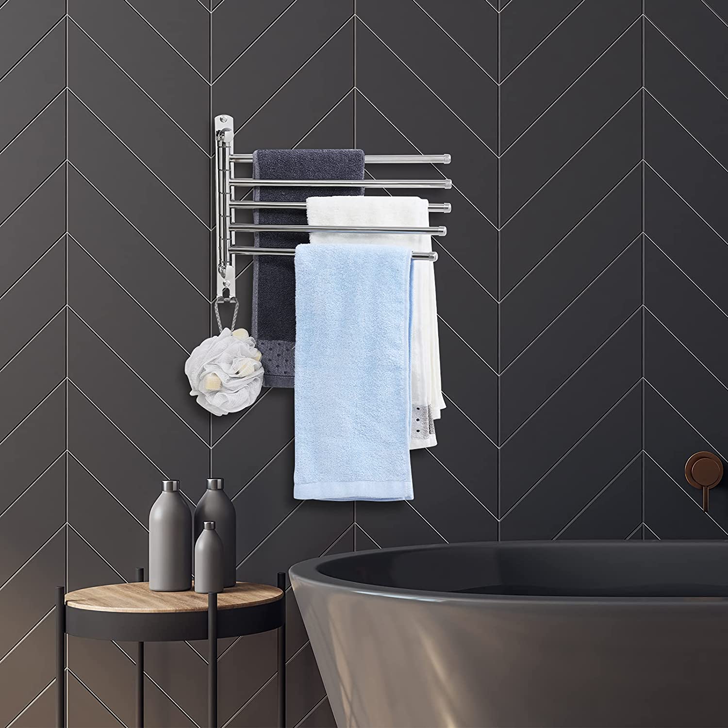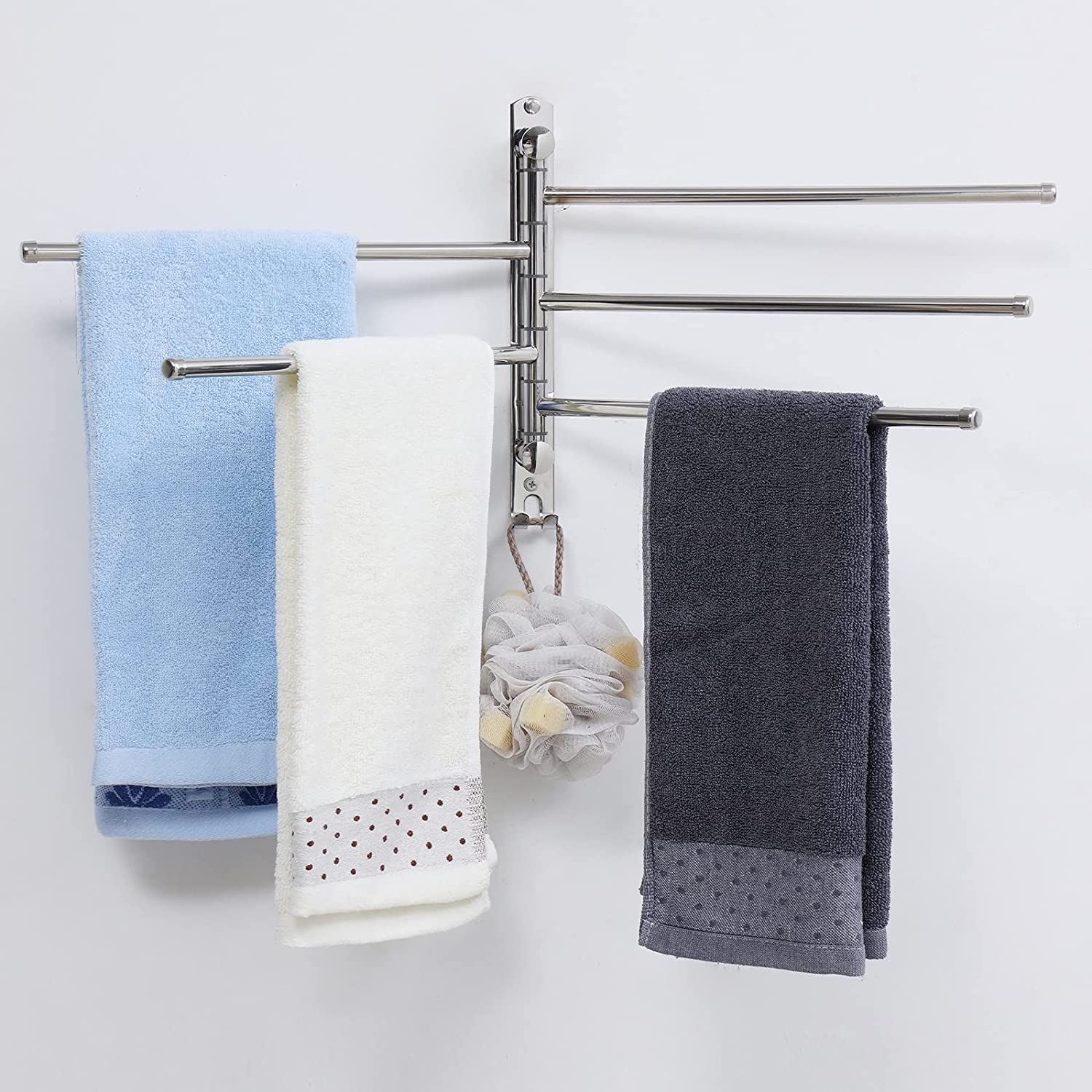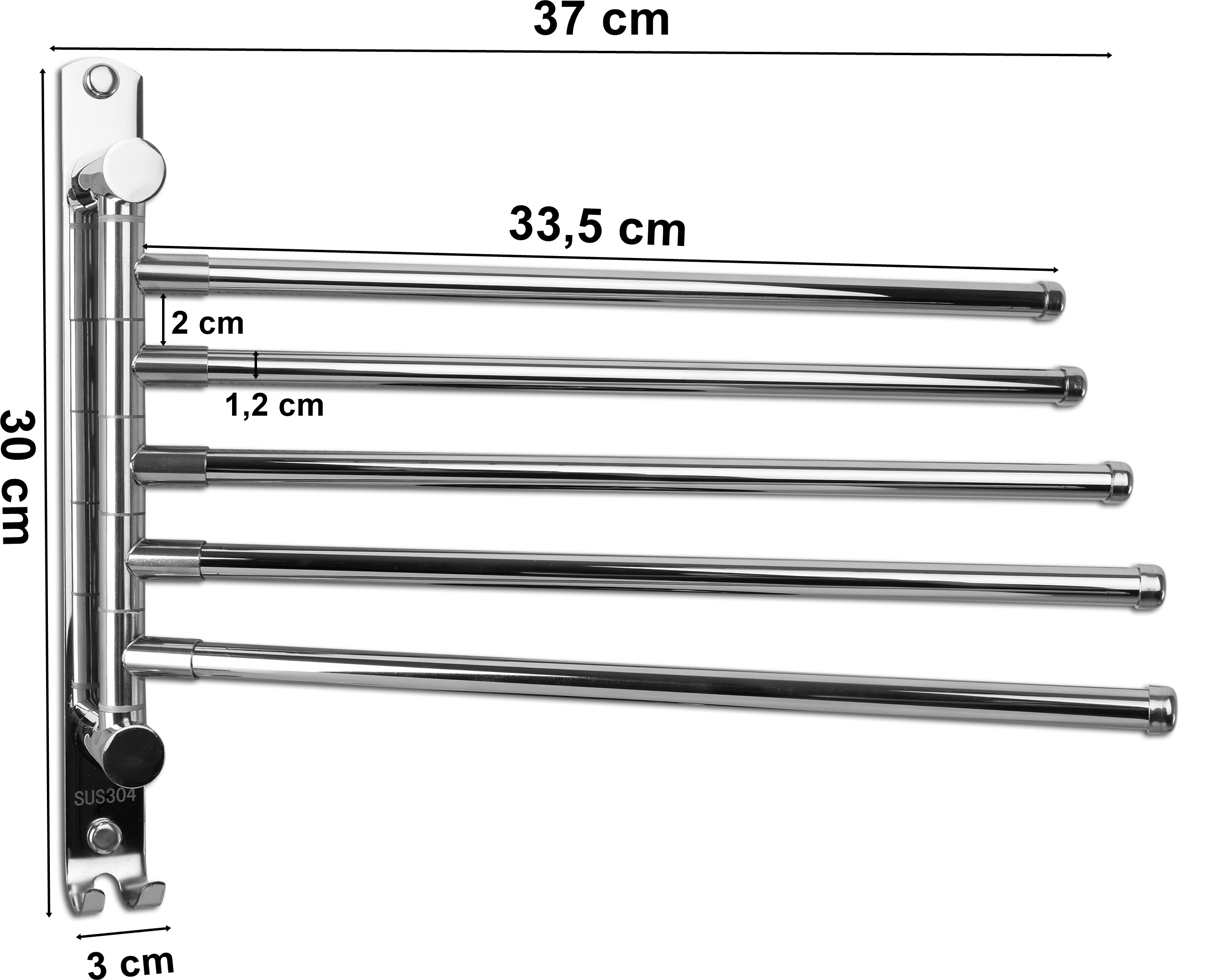 Metalowy wieszak o starannym wykończeniu, wykonany ze stali nierdzewnej najwyższej jakości. Możliwość ustawienia ramion w dowolnym miejcu, co ułatwia suszenie ręczników.