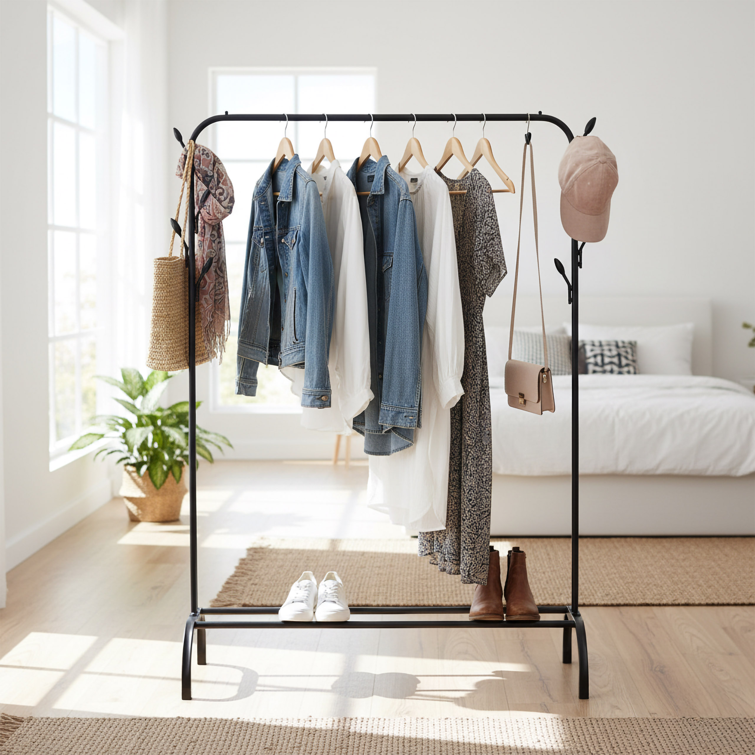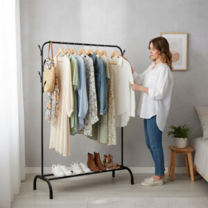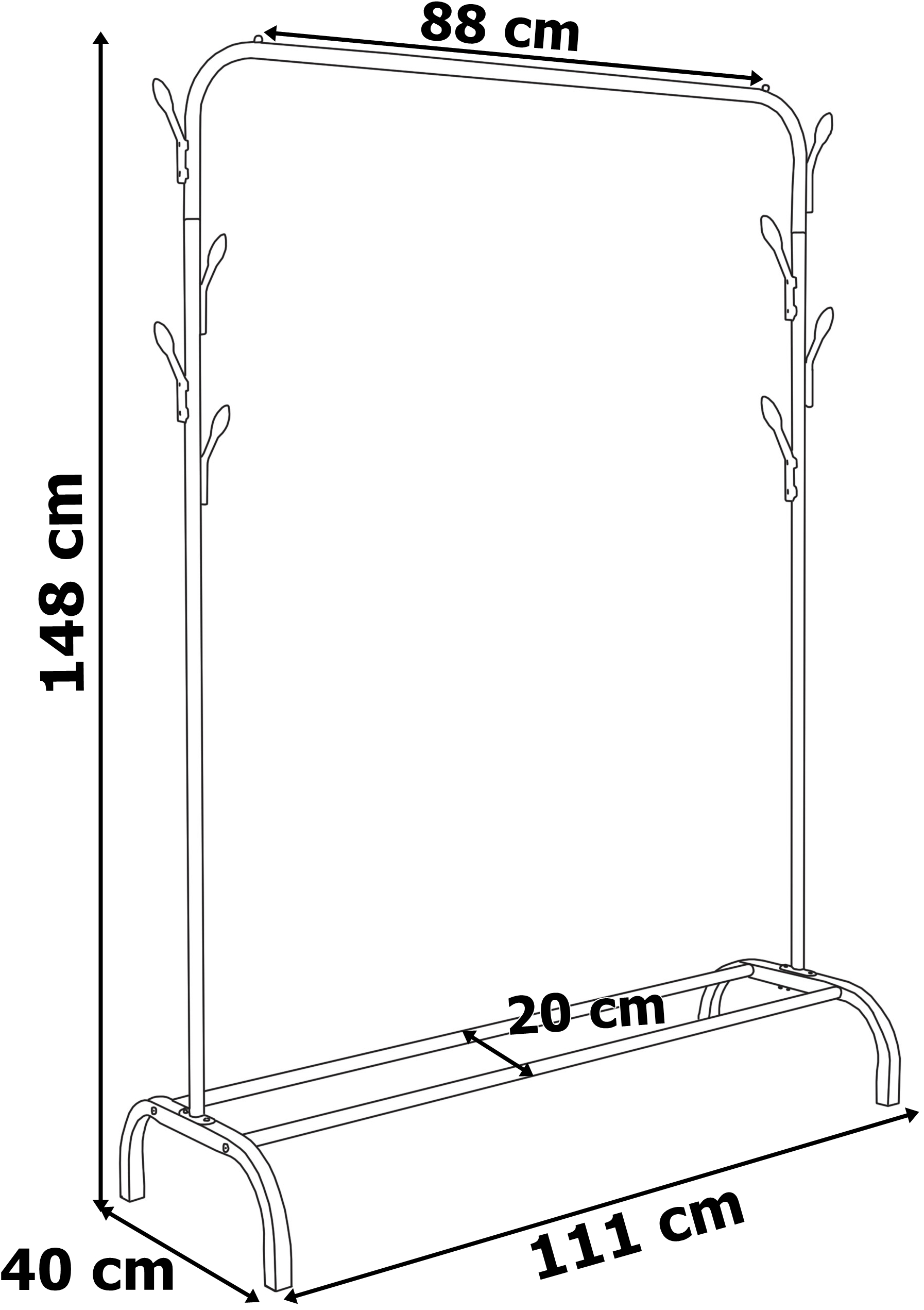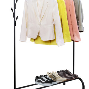 Szukasz funkcjonalnego, stabilnego i estetycznego miejsca na przechowywanie odzieży, butów i dodatków? Wieszak stojący Feliks czarny to nowoczesne i przemyślane rozwiązanie, które pomoże Ci zapanować nad chaosem w przedpokoju, garderobie czy sypialni. Zmieści zarówno codzienną garderobę, jak i sezonowe dodatki, dzięki czemu zyskasz więcej przestrzeni i porządek. Blokady zapobiegające zsuwaniu się ubrań, aż 8 bocznych haczyków oraz pojemna półka na buty to tylko niektóre z jego atutów – a wszystko to w minimalistycznej, stylowej formie, która wpasuje się w każde wnętrze.