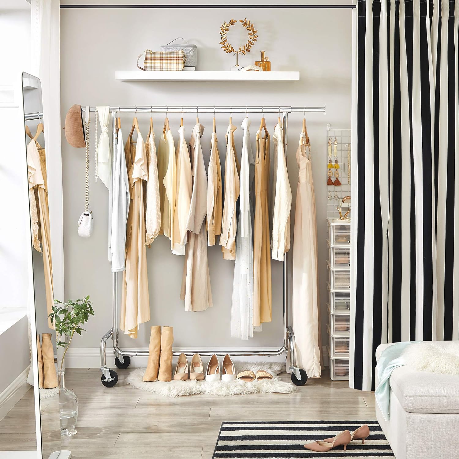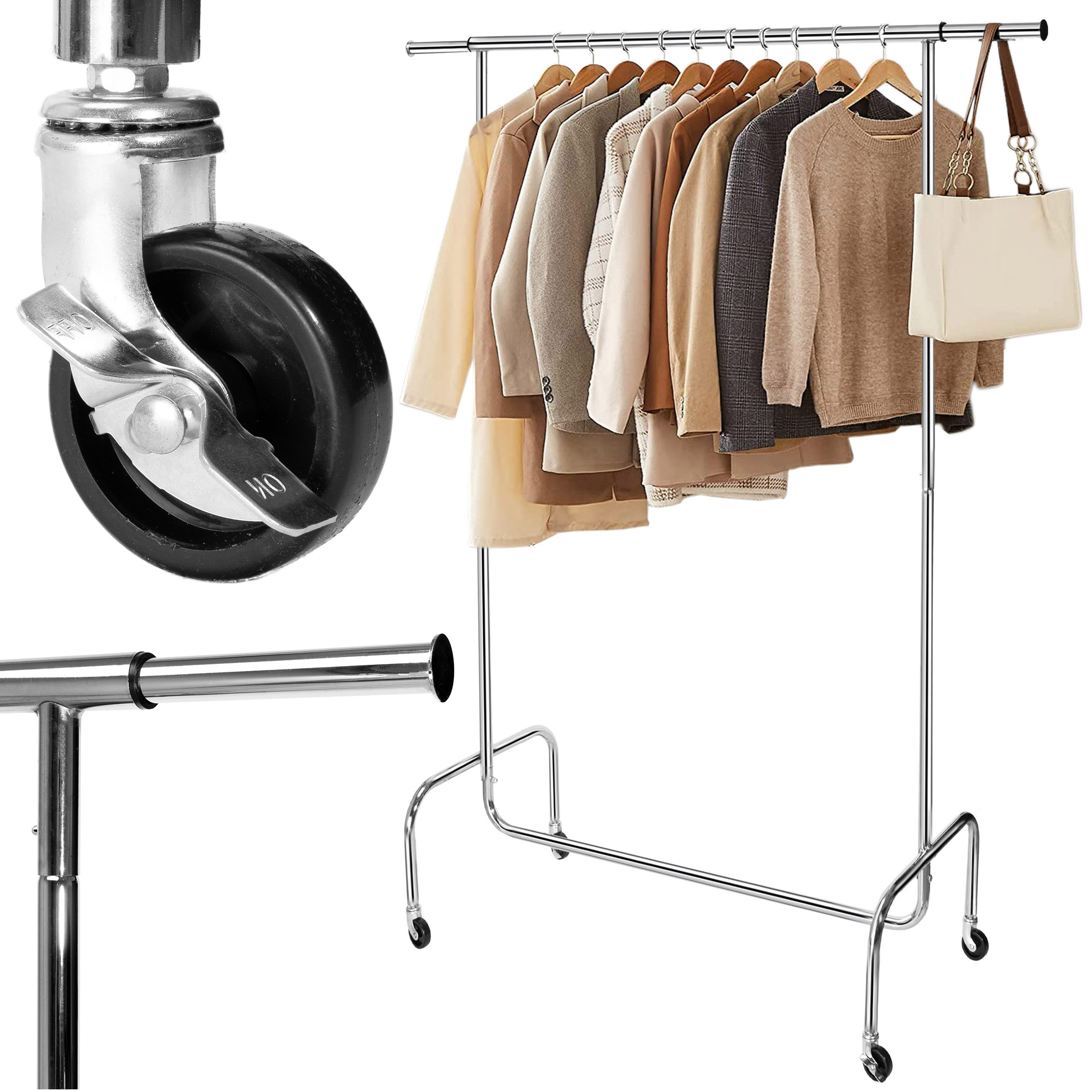 Wieszak mobilny na kółkach HARUN chromowany