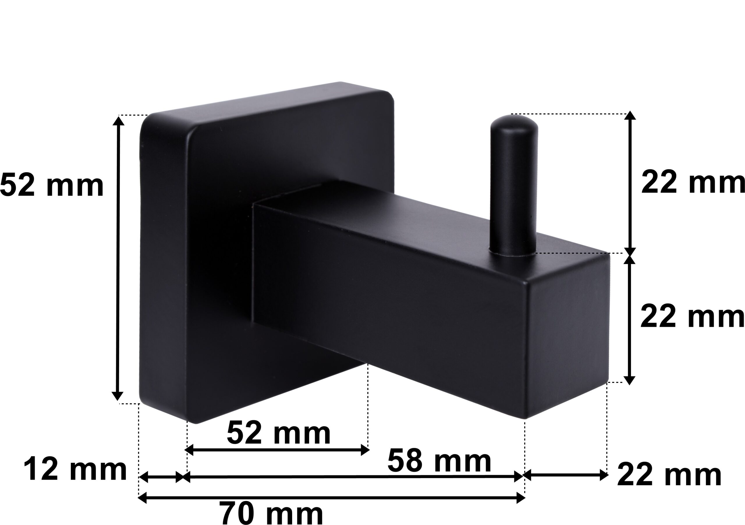 Wieszak Patras został wykonany ze stopu cynkowego najwyższej jakości z zachowaniem dbałości o najmniejsze detale. Uchwyt jest gładki o zaokrąglonych rogach i wykończony na kolor głębokiej matowej czerni. Czarny kolor sprawia, że doskonale sprawdzi się w każdej łazience. Idealnie pasuje do stylu loftowego.