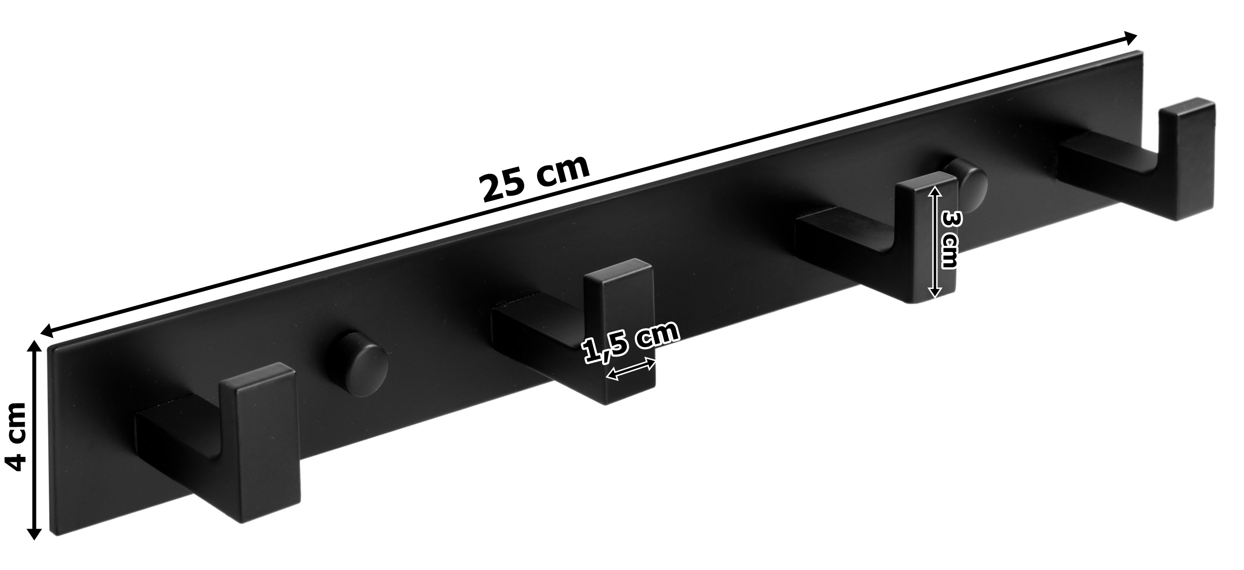 Wieszak Tessera z czterema haczykami został wykonany z aluminium najwyższej jakości, które jest nierdzewne, wodoodporne i pomalowane proszkowo na czarny matowy kolor z zachowaniem dbałości o najmniejsze detale. Czarny kolor wieszaka sprawia, że doskonale sprawdza się w każdym pomieszczeniu np. w łazience, przedpokoju lub kuchni. Idealnie pasuje do stylu loftowego.