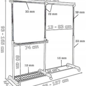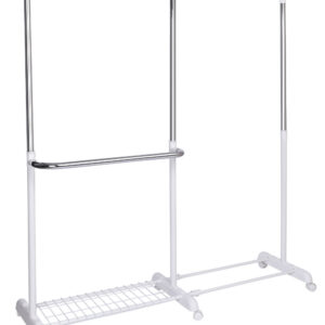 Wieszak stojący Rufo biały to eleganckie i praktyczne rozwiązanie do przechowywania ubrań, które sprawdzi się zarówno w przestrzeni domowej, jak i biurowej. Wyposażony w możliwość regulacji wysokości oraz szerokości, pozwala dopasować go do indywidualnych potrzeb. Solidna, stalowa konstrukcja zapewnia stabilność i trwałość użytkowania przez długie lata. Mobilne kółka ułatwiają przesuwanie wieszaka w dowolne miejsce, a dodatkowa półka na obuwie pomaga utrzymać ład i porządek w garderobie. To funkcjonalny mebel, który oszczędza miejsce, organizuje przestrzeń i dba o Twoją odzież.