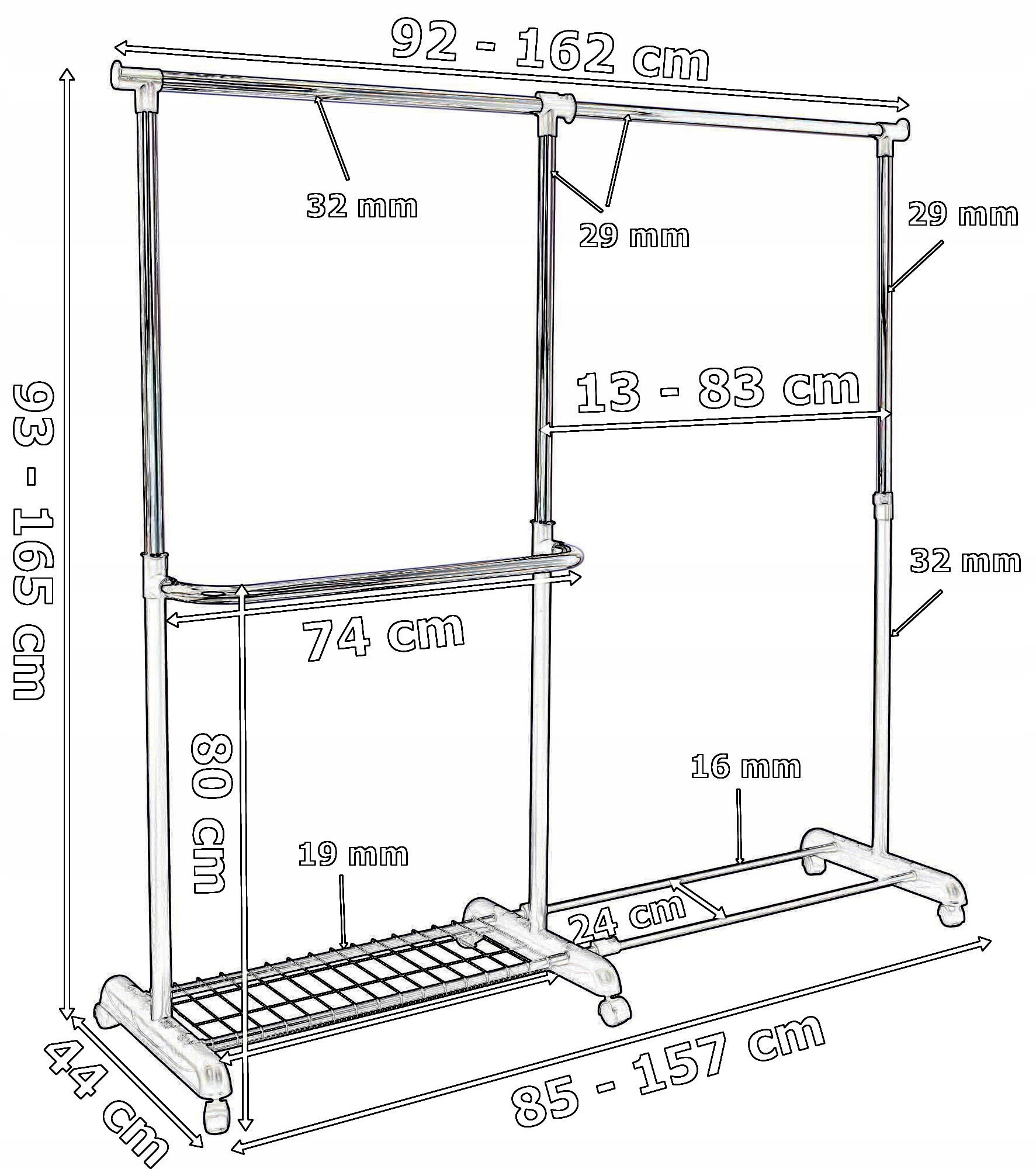 Szerokość: 92 – 162 cm