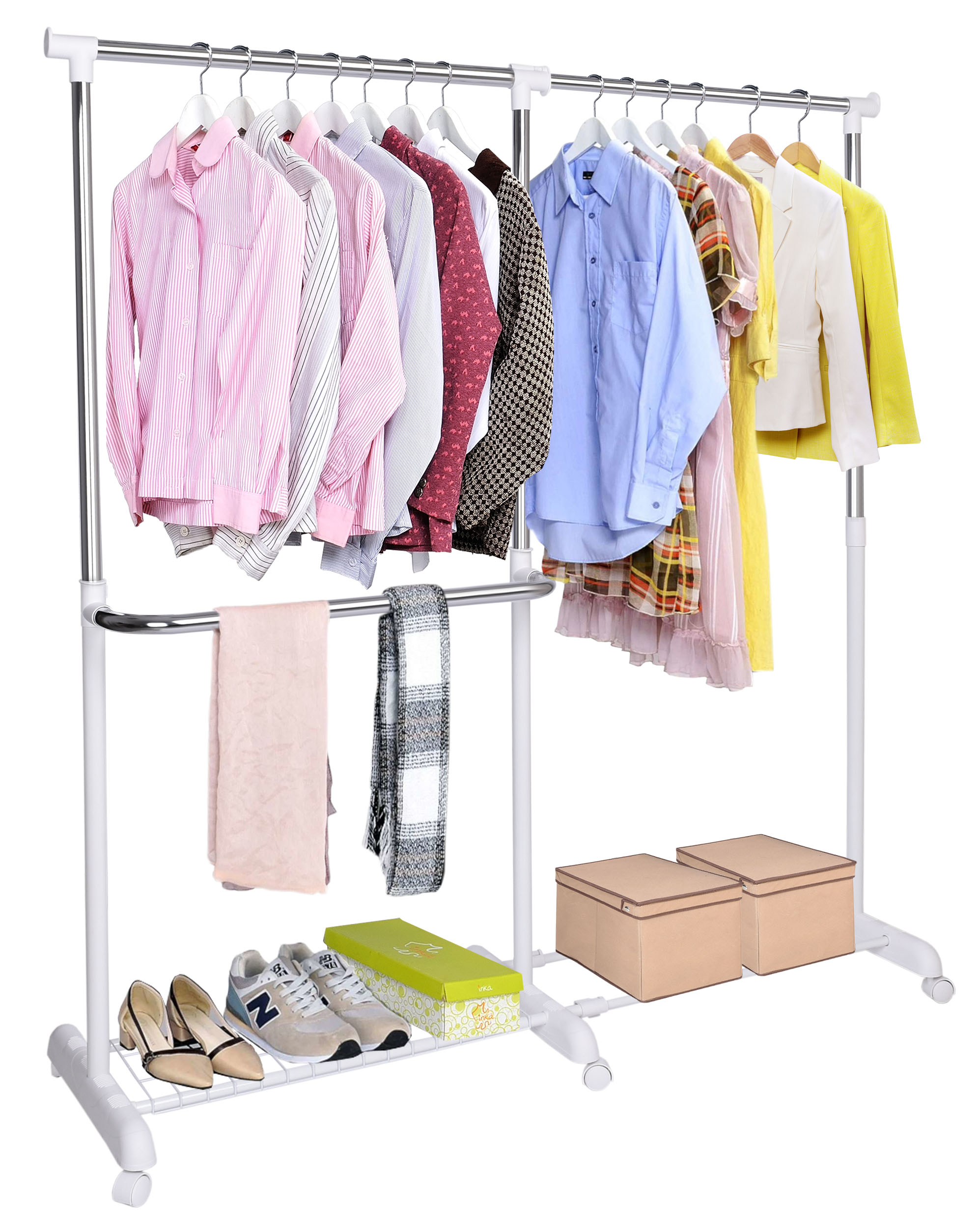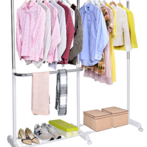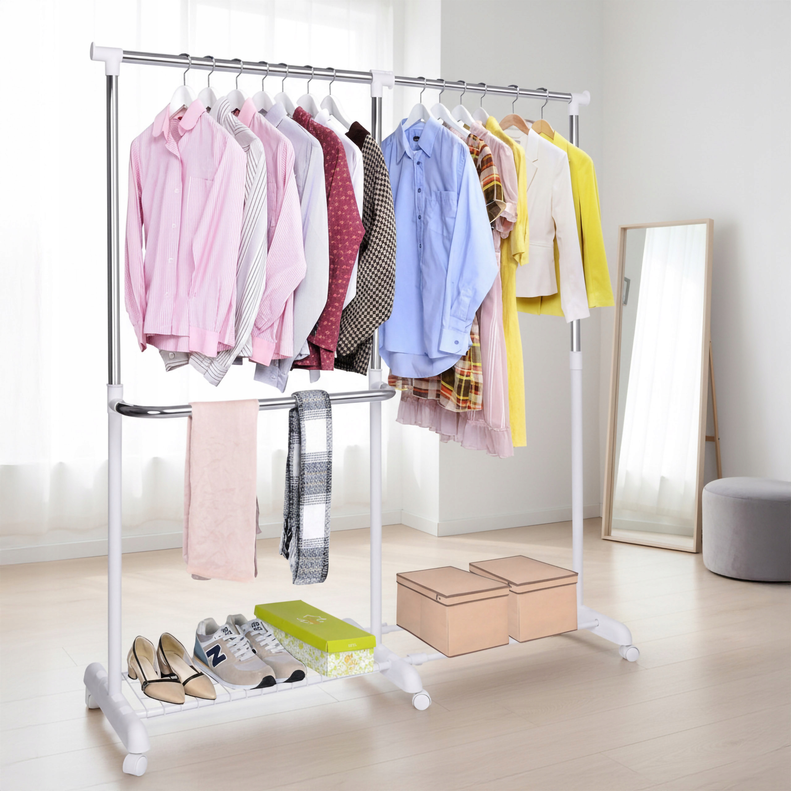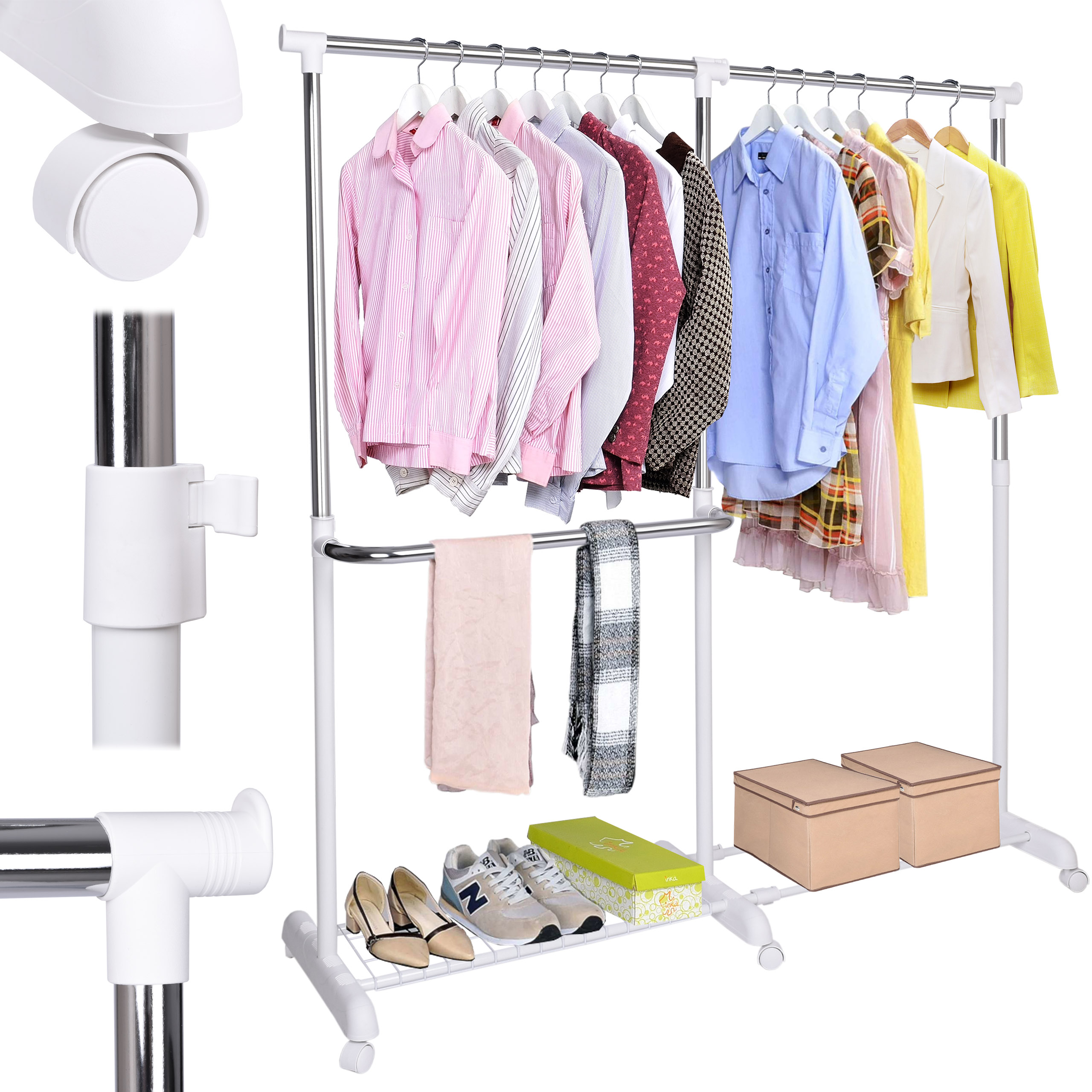 ✨Wieszak stojący Rufo biały – Regulowany wieszak garderobiany na kółkach✨