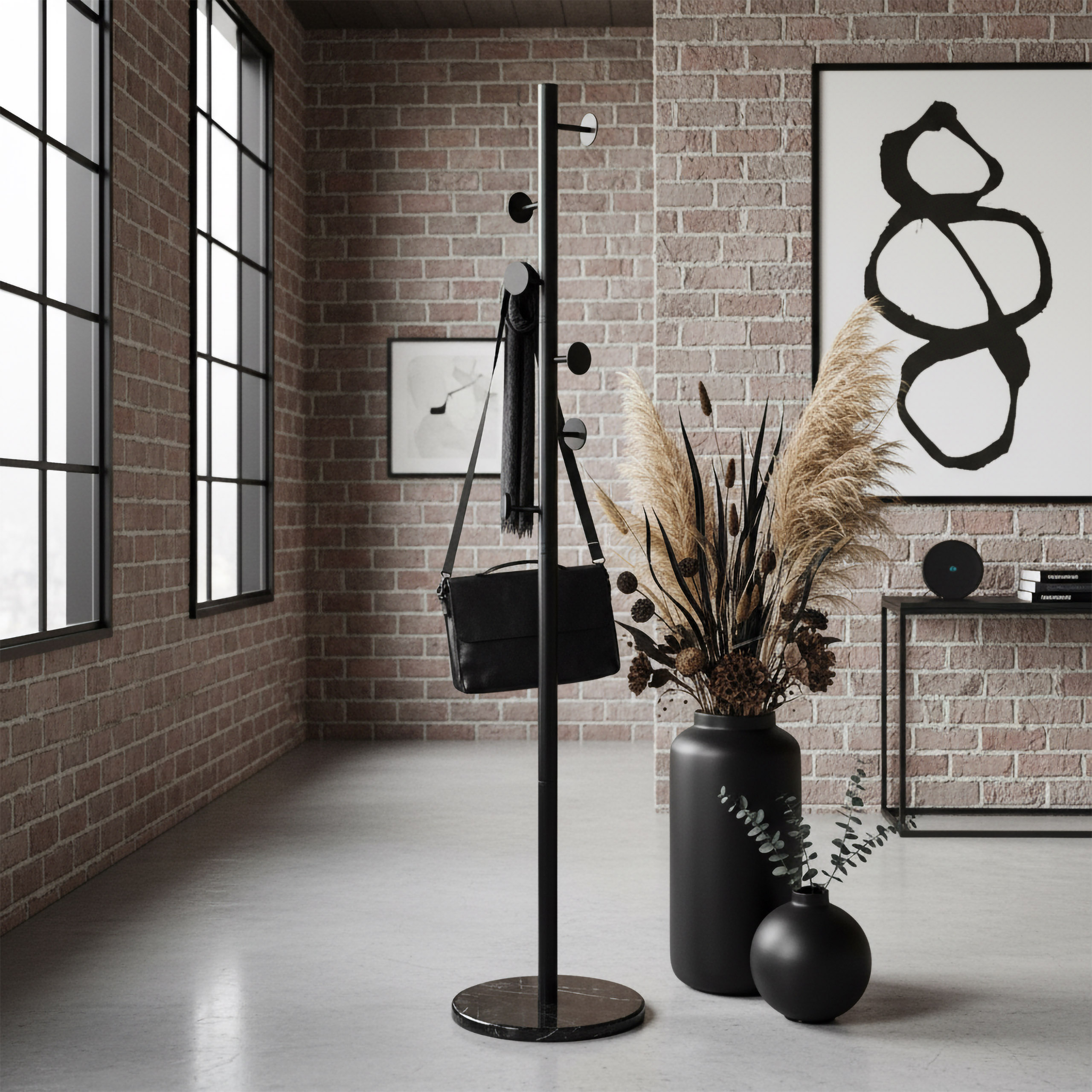 Wieszak stojący Dakar to praktyczne i eleganckie rozwiązanie do przedpokoju, biura czy poczekalni. Dzięki solidnej metalowej konstrukcji i stabilnej marmurowej podstawie zapewnia trwałość oraz bezpieczeństwo użytkowania. Ułatwia utrzymanie porządku, pozwala wygodnie odwiesić odzież wierzchnią i akcesoria, a jednocześnie dodaje wnętrzu nowoczesnego charakteru. Kupując ten wieszak, zyskujesz nie tylko funkcjonalny mebel, ale także stylowy element wystroju, który posłuży Ci przez lata.