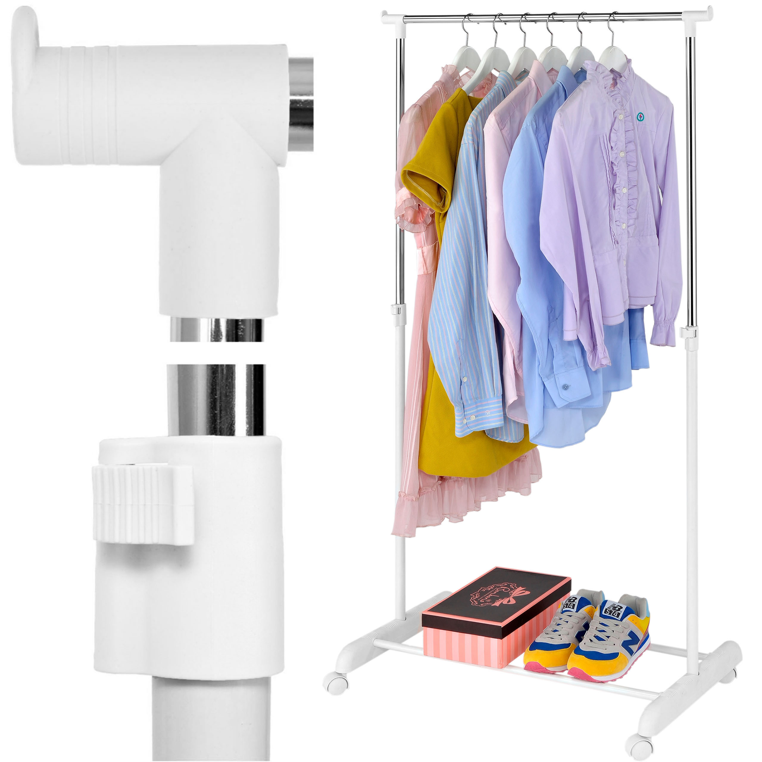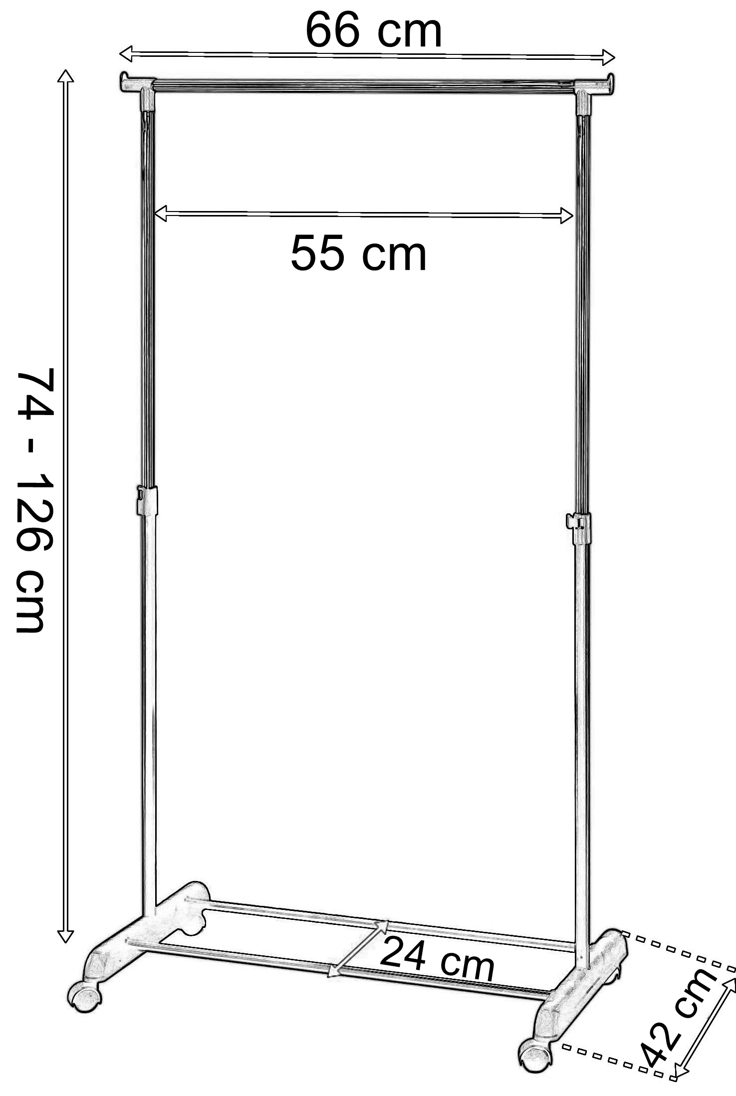 Uniwersalna, mobilna garderoba na kółkach. Lekka, praktyczna, rozkładana na wielu płaszczyznach. Pozwala zawiesić ogromną ilosć wieszaków i zaprowadzić porządek w garderobie. Nieodłączny element każdego butiku czy domowej garderoby. Często używana także w stiudiu fotograficznym i projektowym. Posiada regulowaną wysokość, kółka ułatwiające przemieszczanie wieszaka i dodatkowe zabezpieczenia na końcach wieszaka, zapobiegające zsuwaniu się odzieży.