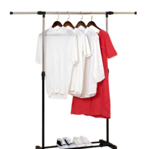 Praktyczny i wytrzymały wieszak garderobiany na kółkach. Wieszak sprawdzi się w każdym domu i w biurze, w którym brakuje miejsca do powieszenia odzieży. Nasz produkt został wyposażony w pojedynczy chromowany drążek, który pomieści dużo odzieży. Dodatkowym atutem wieszaka jest wytrzymała i zaskakująco pojemna półka na buty, oraz nakładki na końce drążka uniemożliwiające zsunięcie się odzieży. Montaż wieszaka jest niezwykle prosty i nie wymaga użycia narzędzi.