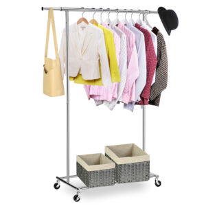 Wieszak stojący na kółkach Tahir chromowany