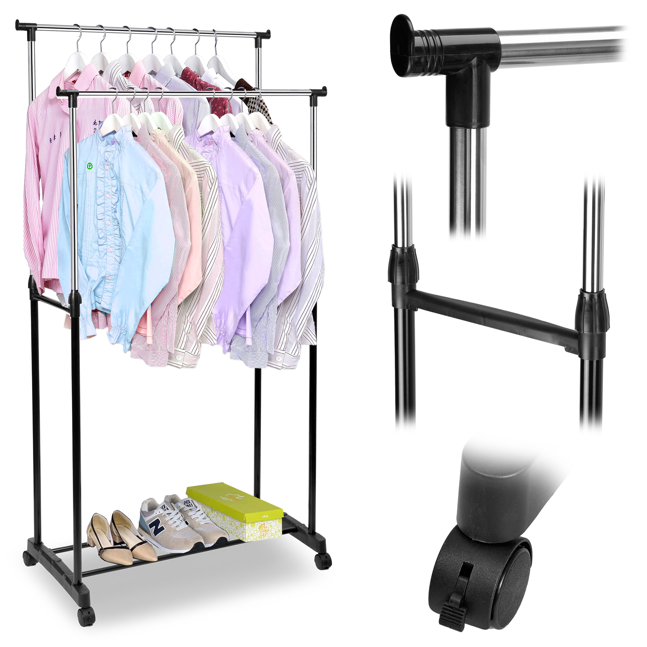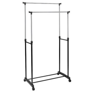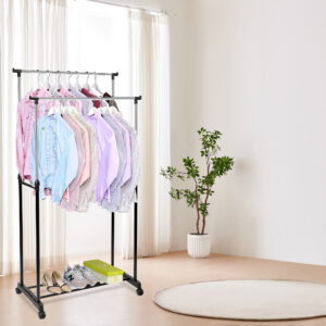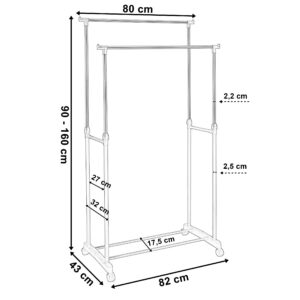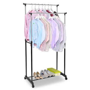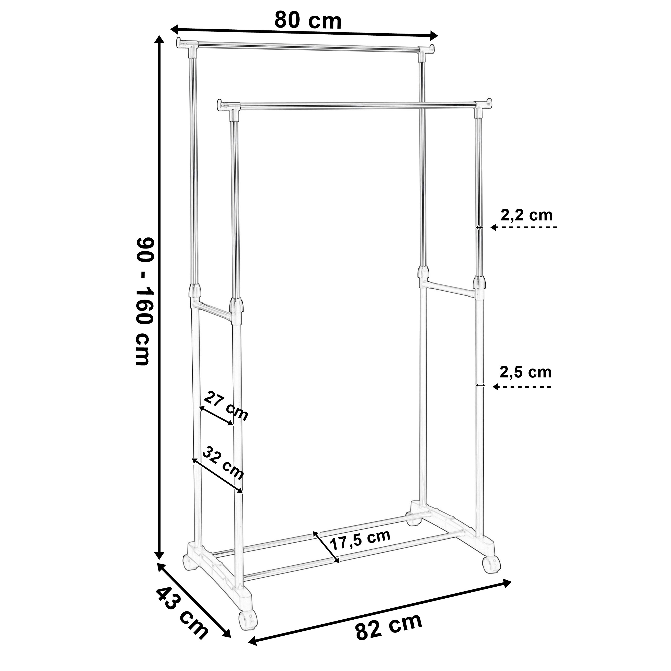 Szukasz praktycznego rozwiązania na przechowywanie odzieży i butów w jednym miejscu? Wieszak WALERIA to doskonały wybór do przedpokoju, sypialni czy garderoby – zapewnia porządek, oszczędność miejsca i nowoczesny wygląd. Dzięki rozsuwanej konstrukcji i dwóm drążkom pomieści więcej, niż się spodziewasz, a stabilna stal nierdzewna gwarantuje trwałość na lata.