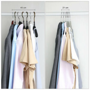 Wieszaki welurowe dzięki swojej konstrukcji zaoszczędzą sporo miejsca w Twojej garderobie czy szafie. Są cienkie i bardzo wytrzymałe. Dzięki nim zorganizujesz więcej miejsca na odzież.