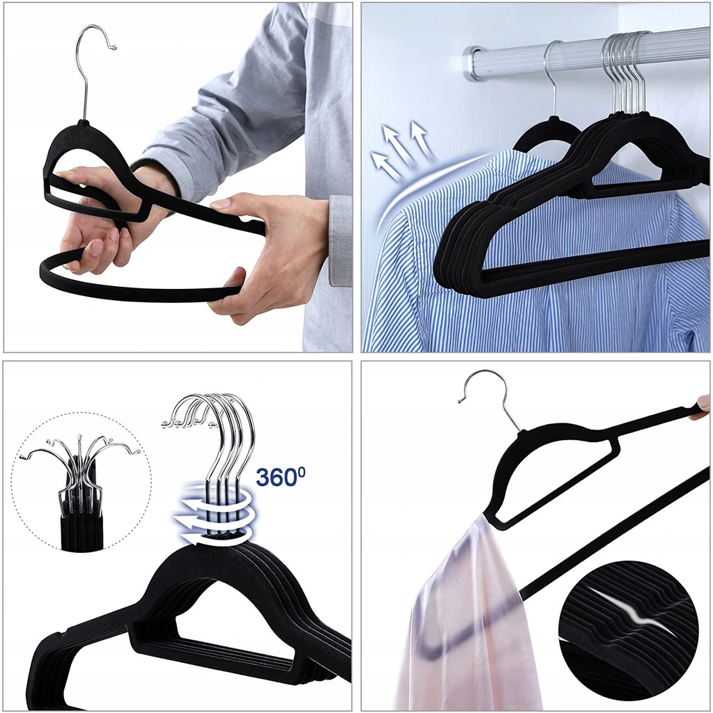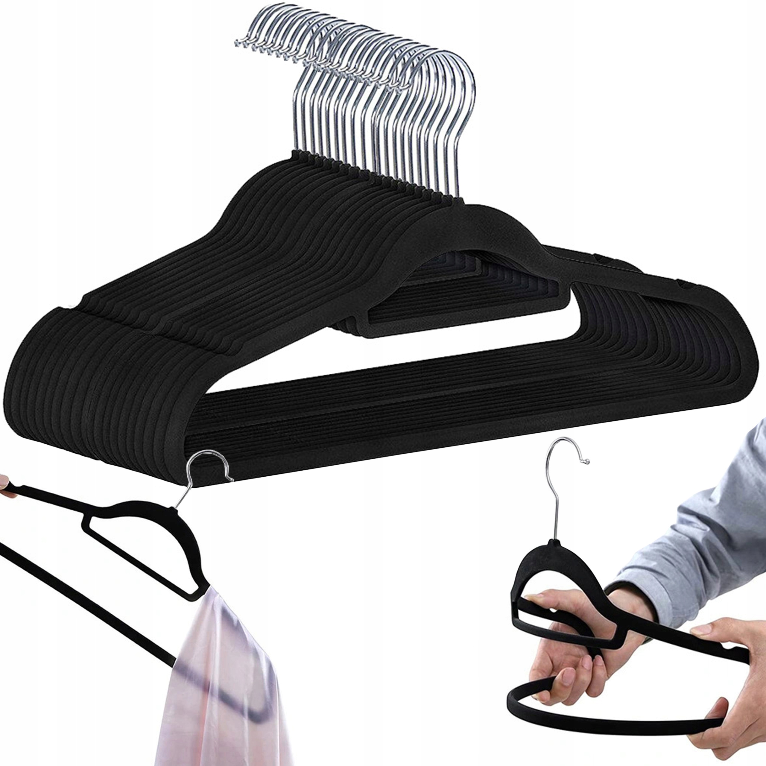 Wieszak welurowy na ubrania Maxi komplet 20 sztuk – czarny