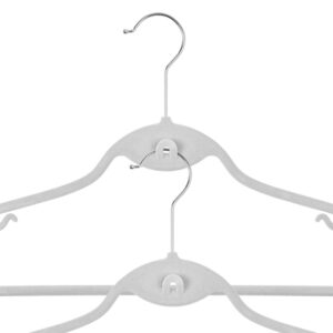 Wieszak welurowy ROXI to praktyczne i eleganckie rozwiązanie, które pozwala utrzymać garderobę w idealnym porządku. Dzięki welurowemu pokryciu ubrania nie zsuwają się, a smukła konstrukcja oszczędza miejsce w szafie. Haczyk do wieszania kaskadowego zwiększa pojemność przechowywania, a dodatkowe haczyki na topy sprawiają, że każdy element garderoby ma swoje miejsce. Wytrzymały, a jednocześnie lekki – idealny zarówno do domu, jak i butików czy showroomów.