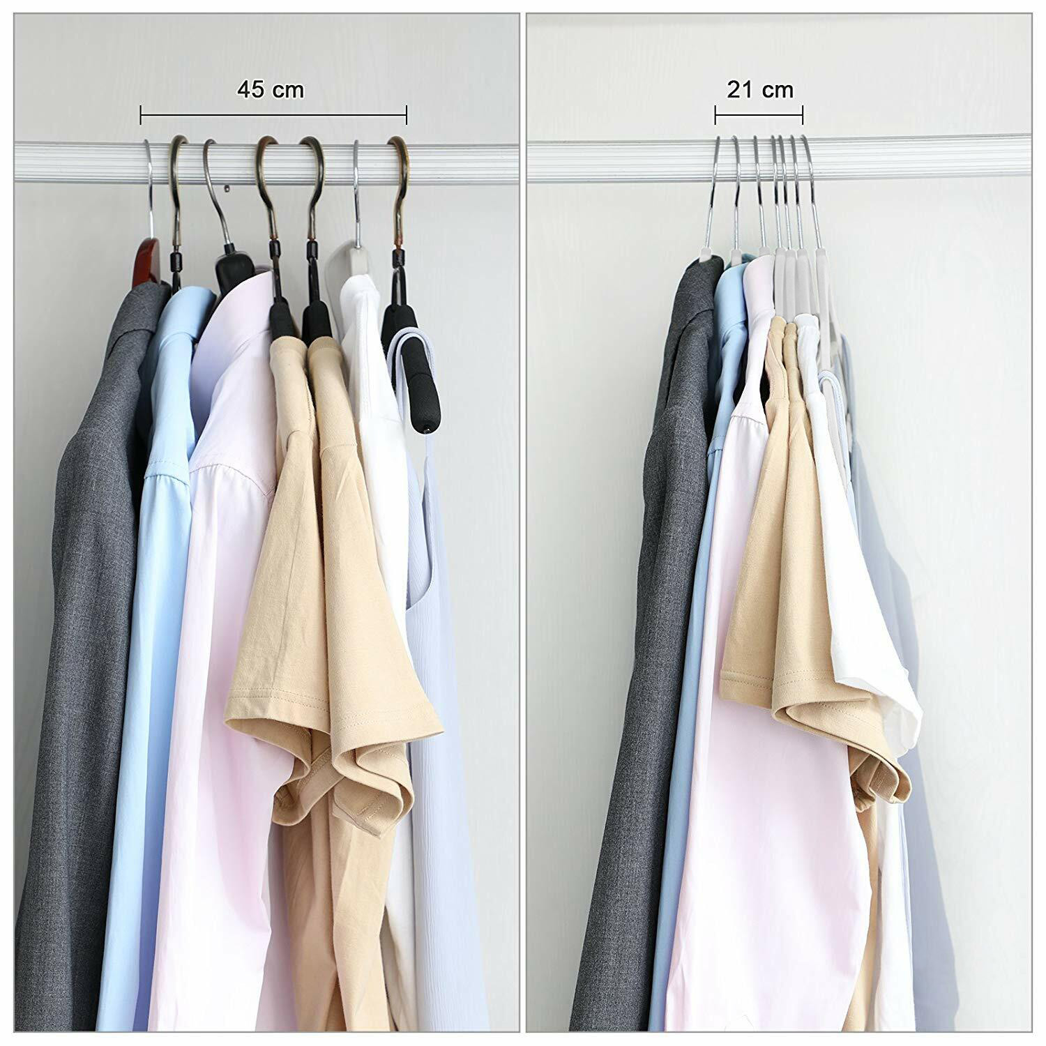 Wieszak welurowy ROXI to praktyczne i eleganckie rozwiązanie, które pozwala utrzymać garderobę w idealnym porządku. Dzięki welurowemu pokryciu ubrania nie zsuwają się, a smukła konstrukcja oszczędza miejsce w szafie. Haczyk do wieszania kaskadowego zwiększa pojemność przechowywania, a dodatkowe haczyki na topy sprawiają, że każdy element garderoby ma swoje miejsce. Wytrzymały, a jednocześnie lekki – idealny zarówno do domu, jak i butików czy showroomów.