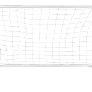 Specyfikacja: Stal malowana proszkowo jest materiałem stelaża, waga bramki wynosi 4 kg, w zestawie znajdują się 2 bramki, 8 szpilek, kolor biały. Zestaw zawiera metalowe profile, instrukcję w języku polskim, siatkę piłkarską, szpilki mocujące do podłoża, zestaw montażowy. Produkt jest zgodny z normą EN-71.