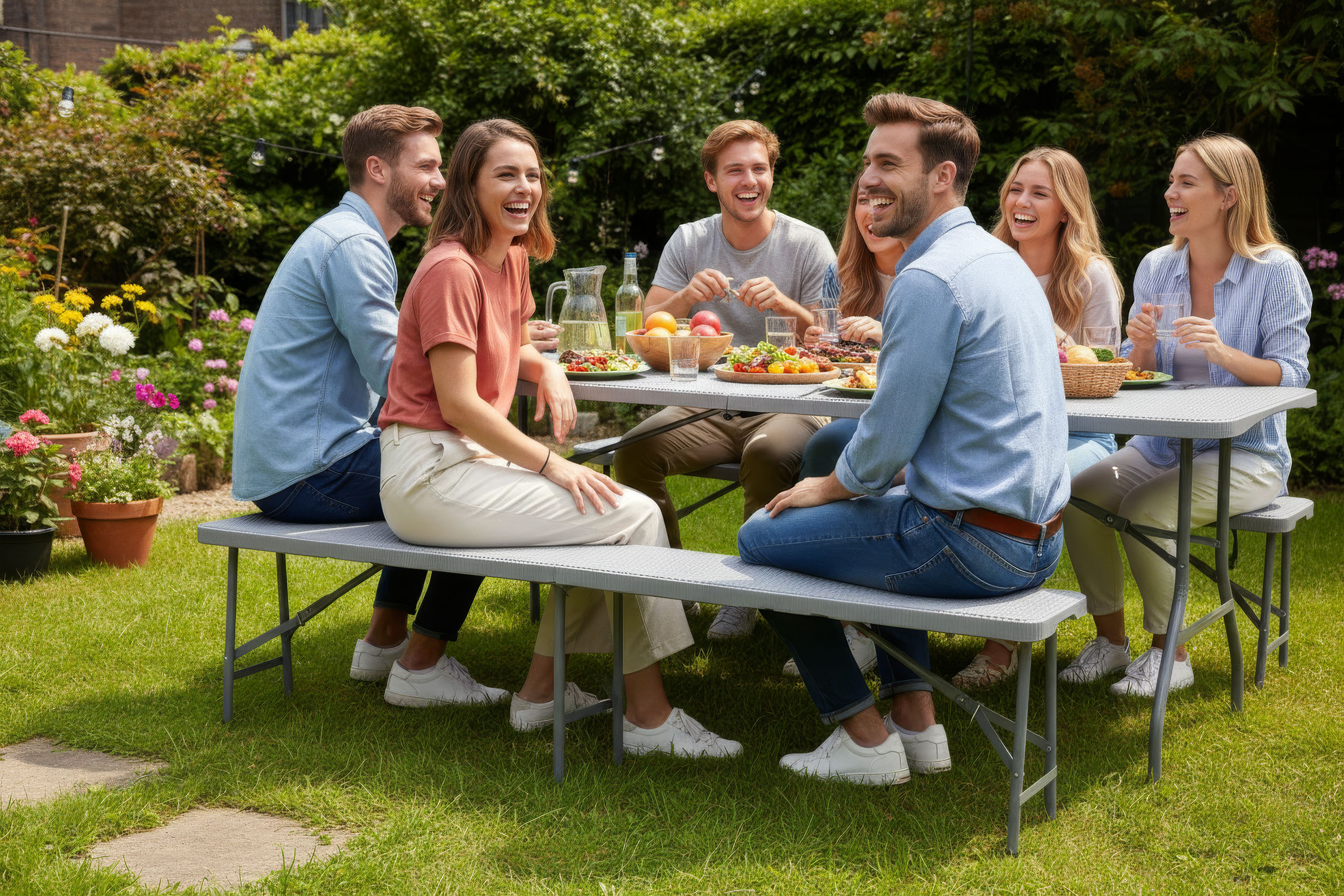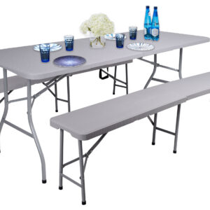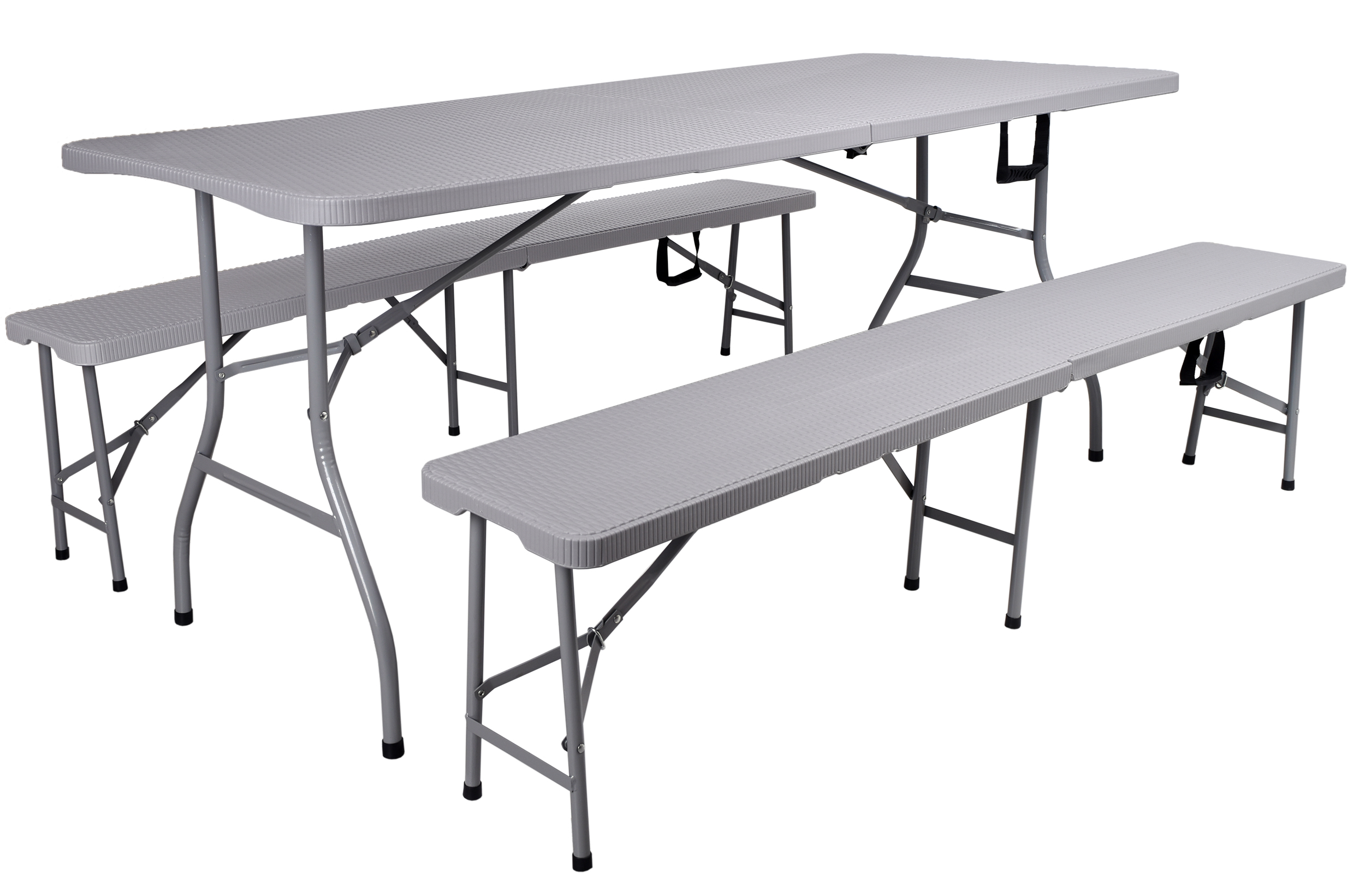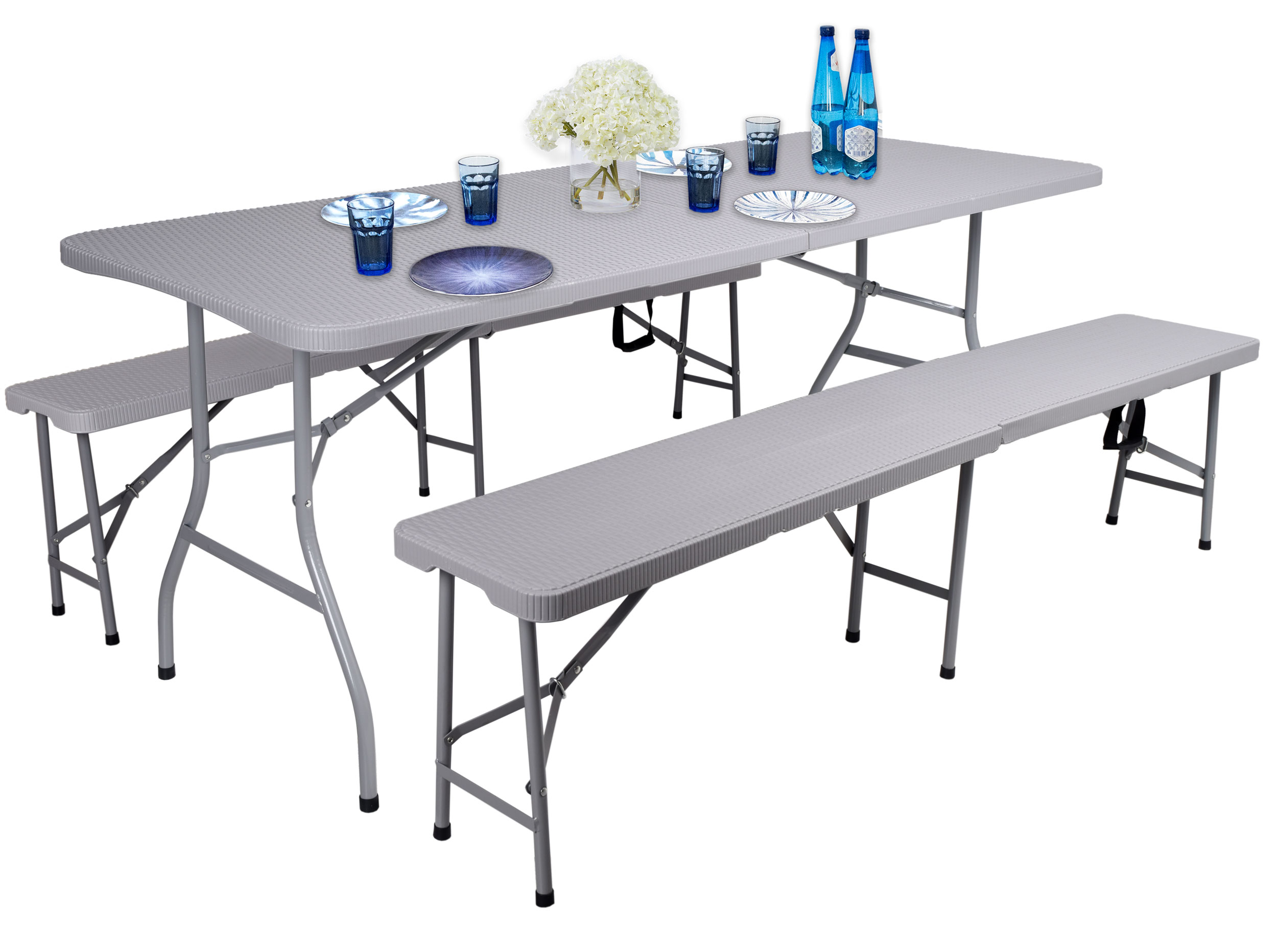 Zestaw cateringowy bankietowy Rattan stół 2 ławy szary