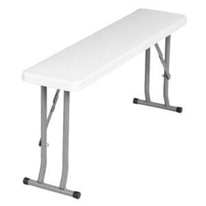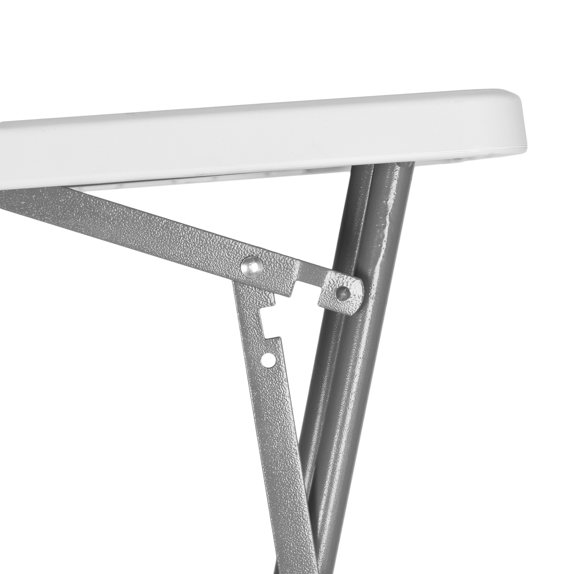 Konstrukcja wykonana ze stali. Blat stołu oraz siedziska ławek wykonany z mocnego tworzywa sztucznego. Zajmuje małą przestrzeń i jest łatwy do przeniesienia.