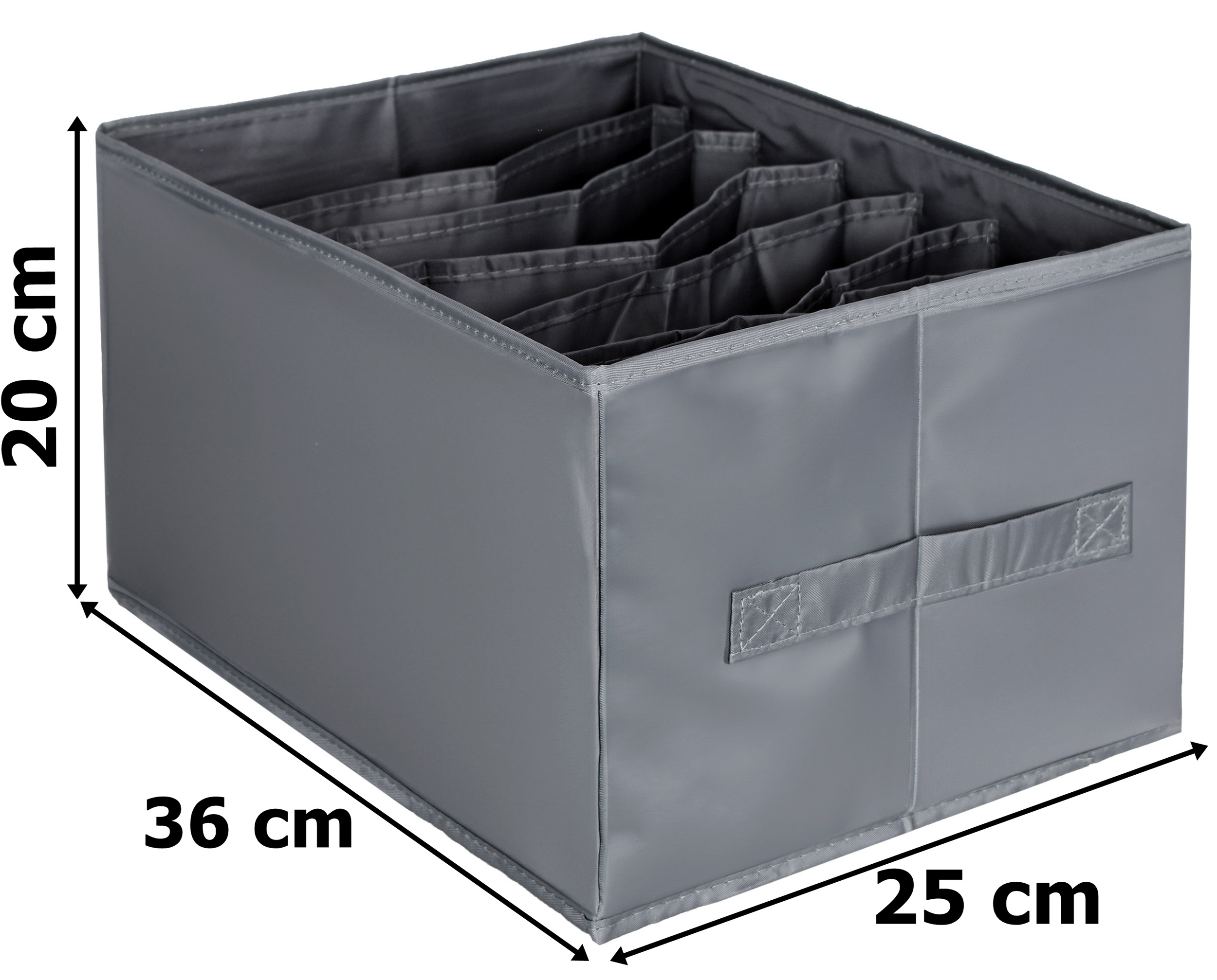 Zestaw dwóch organizerów Liam to idealne rozwiązanie do utrzymania porządku w szafie, szufladzie lub komodzie. Każdy z organizerów ma 7 przegródek, ułatwiając uporządkowanie ubrań, bielizny i akcesoriów. Są praktyczne, szybkie w obsłudze i wyposażone w wygodne rączki. To stylowe rozwiązanie do przechowywania, które usprawni Twój dzień codzienny, niezależnie od tego, co chcesz zorganizować.