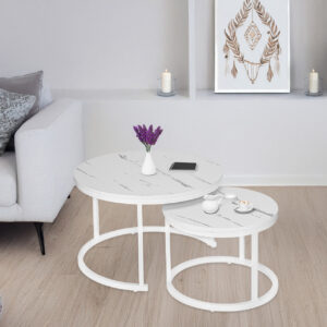 Zestaw dwóch stolików Biały Galen Biały Marmur