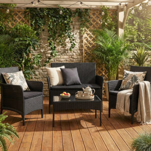 Zestaw mebli ogrodowych CAMELIA czarna czarne poduszki