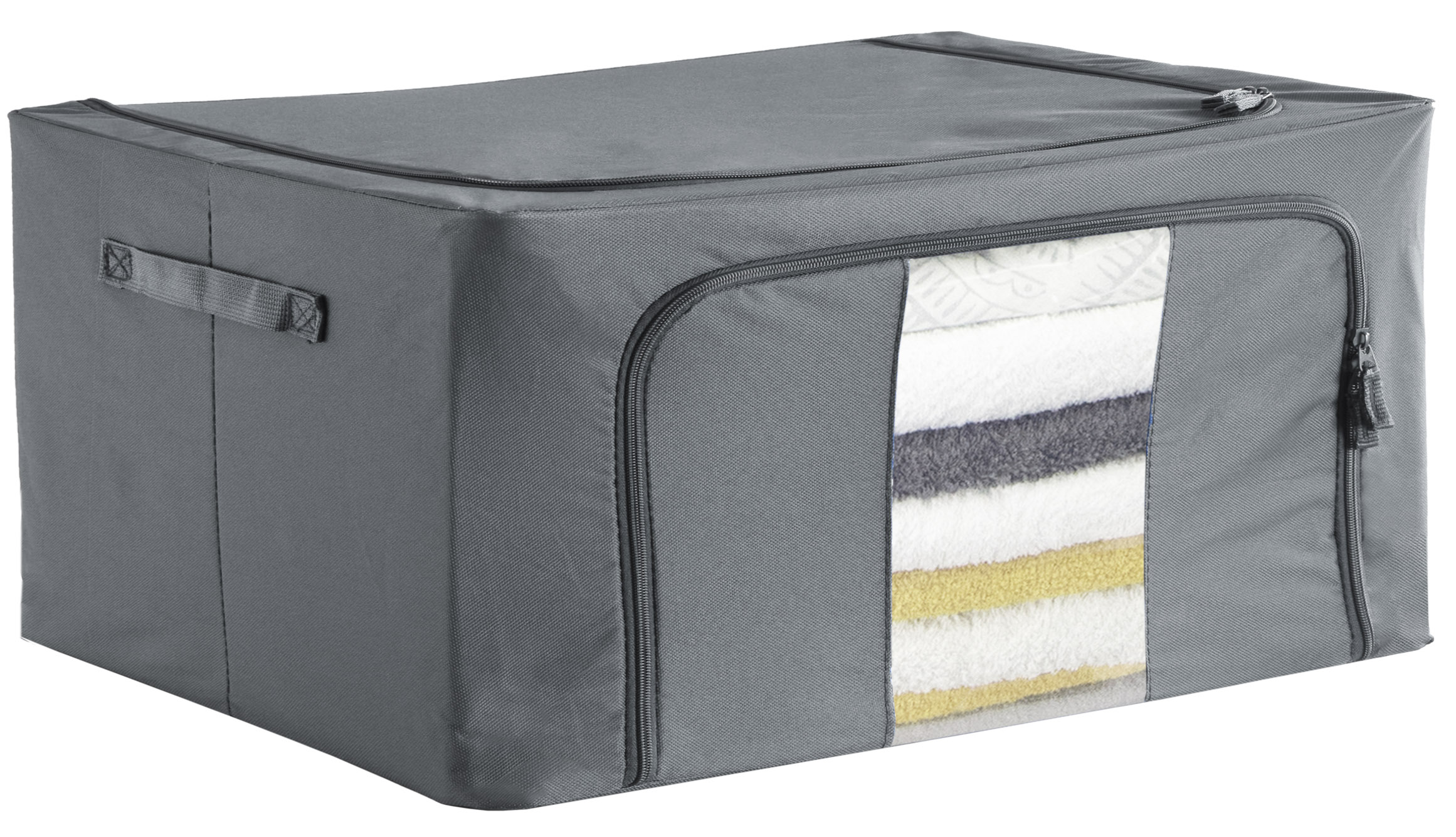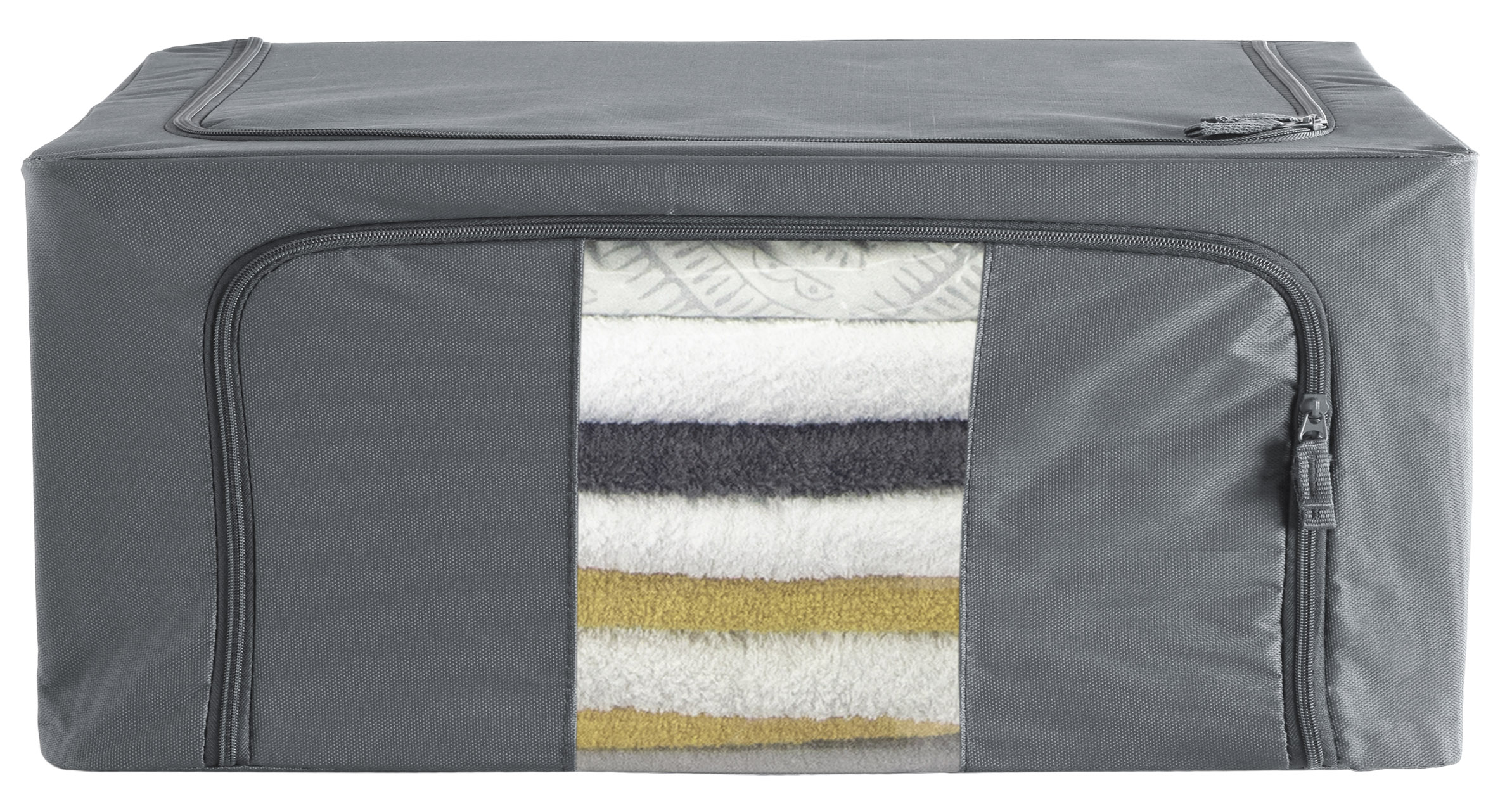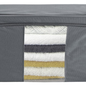 Organizery na pościel Parker to świetne rozwiązanie na zorganizowanie porządku w Twojej szafie. Doskonale sprawdzą się do przechowywania ręczników, pościeli i każdego rodzaju odzieży. Wykonane są z materiałów najwyższej jakości z zachowaniem dbałości o każdy detal. Organizery na odzież Parker posiadają stalowy solidny stelaż i usztywnienie na spodzie, dzięki czemu są stabilne i wytrzymałe, a ubrania chronione są przed zagnieceniami. Modułowa konstrukcja pozwala ustawiać kolejne organizery na sobie, dzięki czemu możemy tworzyć pionowe słupki wg własnych upodobań. Dodatkowo przednia ścianka posiada przezroczyste okienko, dzięki któremu szybko dostrzeżemy rzecz, której szukamy. Torby na ubrania Parker wykonane są z solidnego materiału Oxford 600D, dzięki czemu są odporne na działanie wilgoci, chronią przed molami, kurzem, brudem i brzydkim zapachem. Parker to doskonały zestaw organizerów na ubrania. Są solidnie wykonane z wytrzymałego materiału, posiadają stalowy stelaż, mocne zamki błyskawiczne, wygodne rączki do przenoszenia i okienko identyfikujące odzież. To praktyczne i estetyczne rozwiązanie do Twojej szafy. Dzięki pojemności 24 litrów pojemnik jest w stanie zmieścić dużą ilość odzieży, ręczników, pościeli czy koców